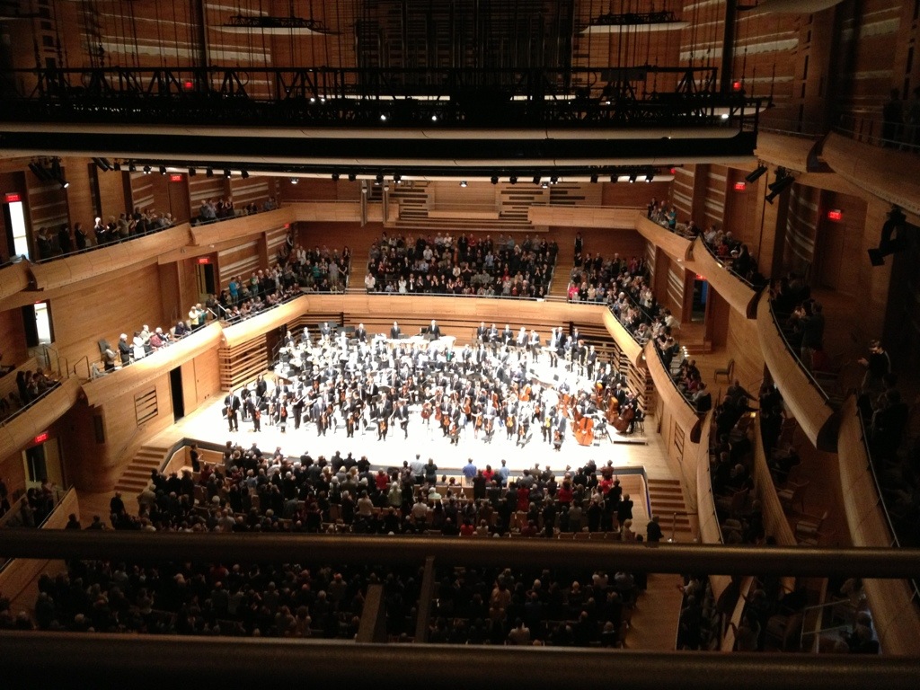 The Orchestre symphonique de Montréal is one of the world’s great orchestras and one that, until recently, did not have the concert hall it deserved to call home. Previously, the orchestra played in the Salle Wilfrid-Pelletier, a 1960s construction that certainly looked imposing from outside and had a attractive auditorium but also lacked the ideal acoustic for symphonic music having been designed as a multipurpose venue. Then, last year the OSM inaugurated their new home, the Maison symphonique, which is a beautiful venue with stunning views of the city skyline from the foyers and a handsome auditorium made mainly from wood. Acoustically, it works very well. The sound is resonant and warm with a strong bass line. Yet it also has exceptional clarity which allows every detail to be heard. I was delighted to be attending my first concert there today and seeing the orchestra that gave me my first musical experiences at the top of its game.