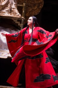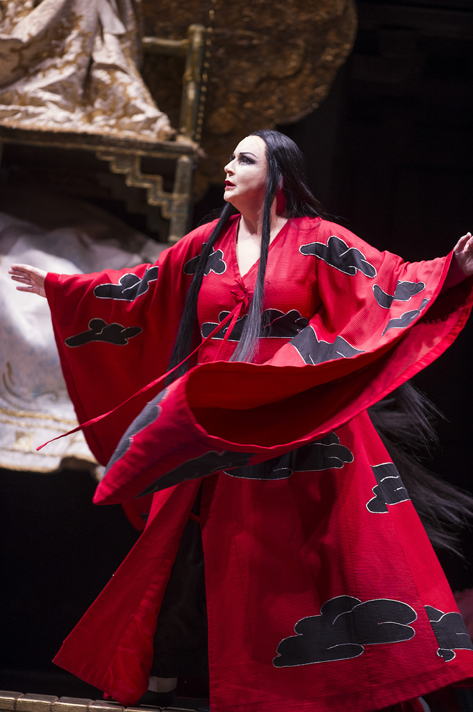 The men were decent without being spectacular. Alfred Kim displayed a firm tenor that was notable for its richness and consistency of tone and he tried very hard to phrase the music and make much of the words. It wasn’t the most memorable assumption but he hit all the big moments, a nice spot-on top C in the riddle scene and got through ‘that’ aria efficiently enough and for that we must be grateful. Matthew Rose seemed to me to be having an off-night. The richness of tone was there but there was also a tendency to sing on the sharp side of the note. The trio of ministers was more than competent, especially Grant Doyle’s fluently-sung Ping.