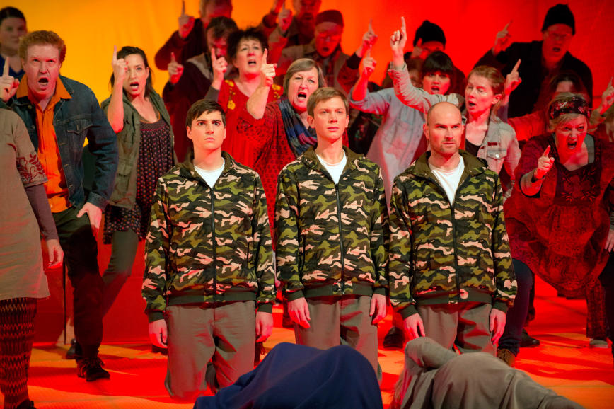 Patricia Bardon’s Mary was perhaps a character who was not always with us. She could have been suffering from PTSD or disturbed by the events of her life. Hers was a haunting presence on stage, always making an impact even when she wasn’t singing. Vocally she was extremely fine – the difficult intervals mastered and her oaky yet limpid mezzo brought great beauty despite the harrowing setting. Meredith Arwady’s rich and full-bodied contralto brought strong low notes and a sympathetic stage presence to the role of Martha. The three countertenors, always singing together, Daniel Bubeck, Brian Cummings and Nathan Medley, were constant presences on stage – they negotiated Adams’ harmonies with ease and blended seamlessly together. Russell Thomas’ Lazarus sang with genuine humanity and vocal warmth. The voice is so easily produced and carried across the orchestra effortlessly. His Passover aria was incredibly moving in its sincerity and was for me the single most effective moment in the score where the text, music and performance truly came together. Make no mistake, Thomas is the real thing and he is without doubt a major talent.