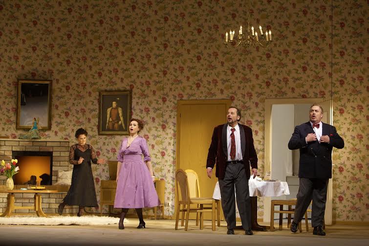 It’s a shame because the other acts were actually quite successful. The curtain opened on a large, dark stage with the opening chorus warming their hands over a fire. As we move into Saint-Just, the oppressive environment of the monastery descends from the flies, encasing the characters. By focusing on the individuals and placing them within a claustrophobic set, Konwitschny certainly set up the focus on the private. What it missed was the emphasis on the public. Interestingly, the ballet scene was staged as Eboli’s dream of being a suburban housewife married to Carlos. She invites Élisabeth and Philippe to dinner, promptly burns the bird and Carlos calls out for pizza. It works because it’s choreographed to the music and trusts the music to illustrate the action. Nevertheless, relationships between individuals were sharply drawn and the cast threw themselves into the task with complete commitment.