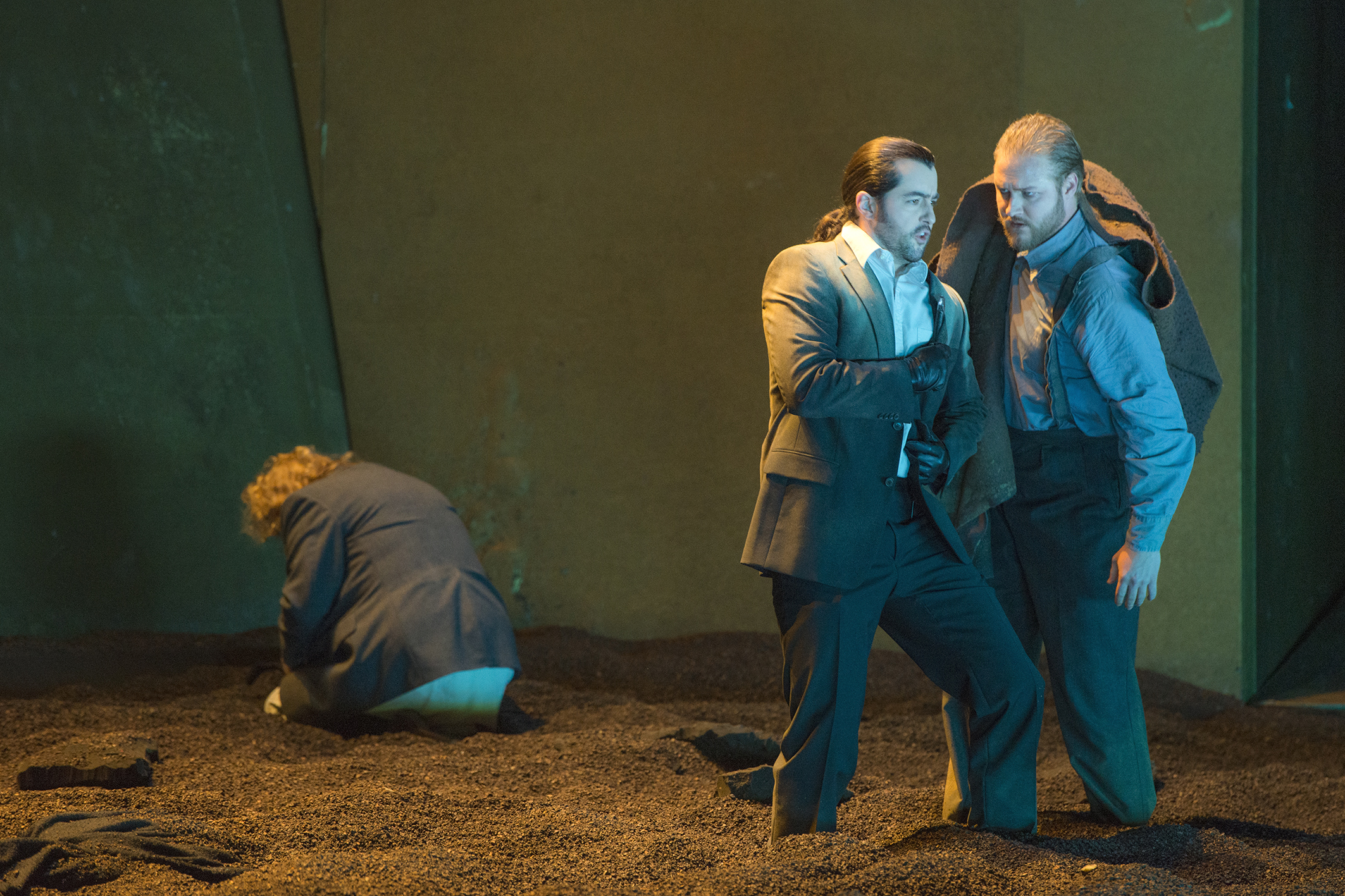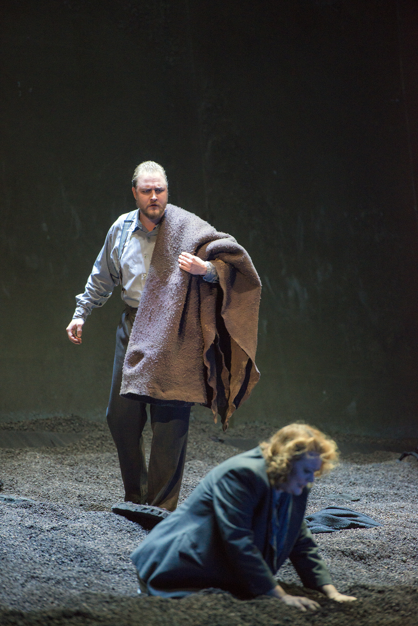 Kirsten Harms sets her staging in what appears to be the bottom of a garbage chute. Indeed for those of us who grew up with the original Star Wars movies one almost expects Chrysothemis to show up in a long white shift with bagels attached to her head. The floor is covered in earth and the addition of the dancers in the final scene reminded me of Robert Carsen’s Paris staging. Indeed, tonight’s suffered from a similar issue in that the earth on the stage affected the acoustic properties of the set and there was a more noticeable difference than usual when the singers were singing at the front of the stage than at the back. It certainly provided a logical enough framework for the action to take place in. There was however one major non sequitur. Klytämnestra first appears carrying the axe. As she hears the news of Orest’s death she forgets about it and leaves it in the earth. Later on Elektra prowls with it and forgets to hand it to Orest. It left me wondering whether given the circumstances, would those in power really have allowed Elektra to freely roam the palace with the axe, or did it in fact mean that Klytämnestra left it with Elektra deliberately as she subconsciously knew what Elektra would do with it? I found this somewhat problematic and Harms didn’t really resolve this. Perhaps ultimately, the question that Harms doesn’t answer is why, if this is such an appalling place that Elektra lives in, do Klytämnestra and Chrysothemis freely roam in it? I’m not quite convinced that Harms completely answers the issues that she raises but as a staging it is certainly revivable.