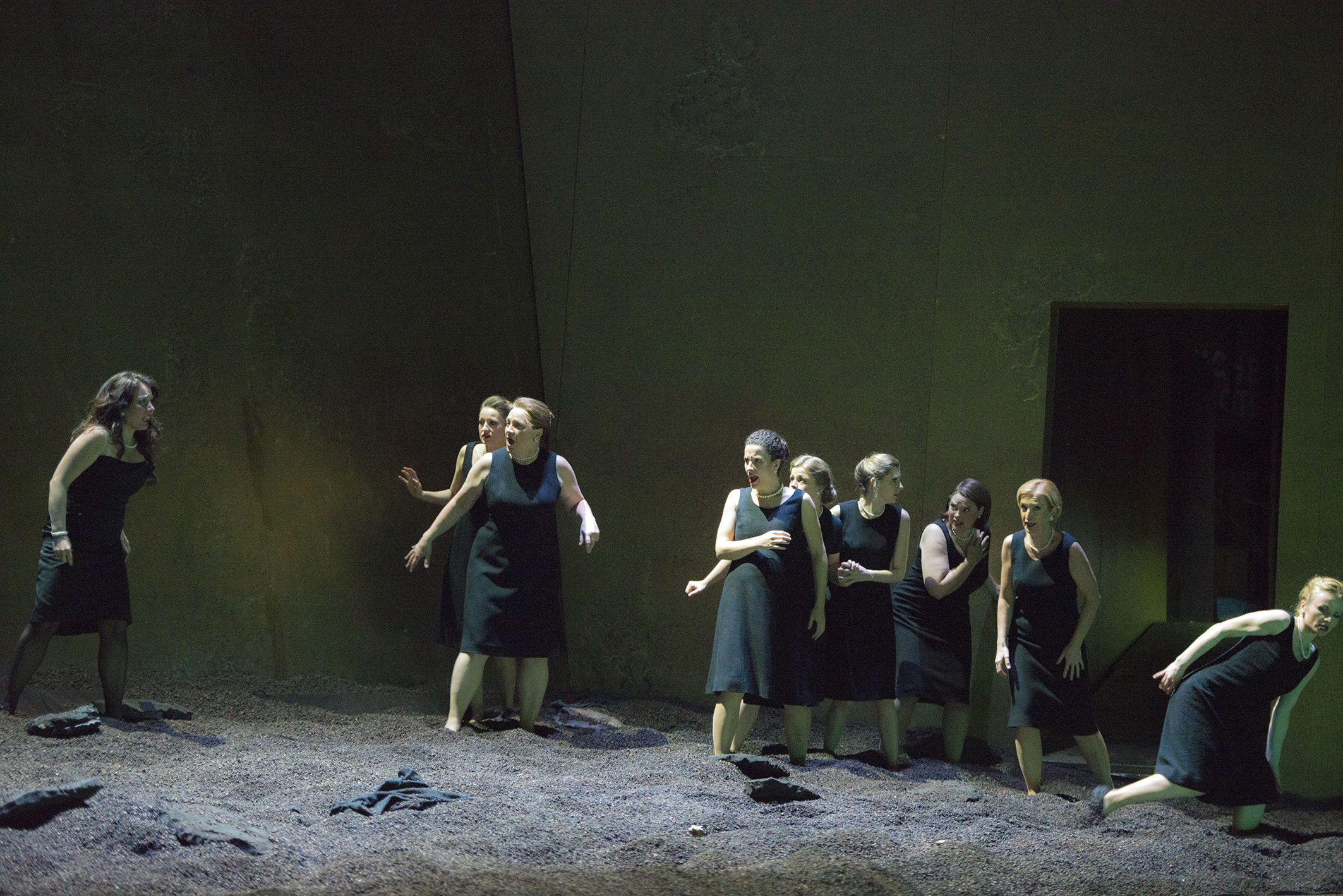 During the months of March and April 2016, the Deutsche Oper is presenting a major retrospective of the works of Richard Strauss. In addition to tonight’s Elektra, there are performances of Die ägyptische Helena, Die Liebe der Danae and Der Rosenkavalier in existing house productions. Additionally, there was a new production of Salome by Claus Guth which I regrettably was unable to see. When tonight’s Elektra was originally premiered, it was performed in a double bill with an abridged version of Vittorio Gnecchi’s Cassandra. I actually saw this show back in 2009 but with the passage of time, I must admit that I don’t remember much other than it took place in the same set. I thought of it tonight simply because in the final scene, Elektra was joined by a corps of lady dancers who danced along with her costumed in a similar dress. They seemed to have come from nowhere and it made me wonder whether in fact in the original production they had played a more prominent role.