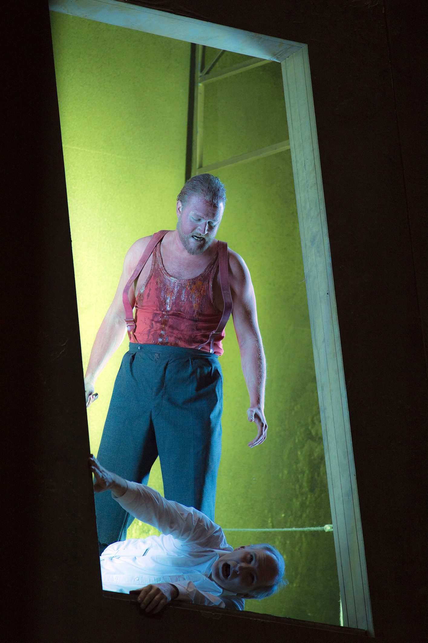 Clemens Bieber’s Ägisth also sounded somewhat dry, especially on top as he didn’t quite hit the last notes of his scene. Despite that he sang with a lieder singer’s attention to text and this was most welcome. Tobias Kehrer sang Orest in a firm, well-focused bass. His was definitely a much more resonant Orest compared with the bass-baritones or baritones we usually hear in the part. The voice was absolutely even from the top to bottom, the registers fully integrated and the high G-flat nicely placed. Very impressive. The remainder of the roles reflected the high standards of the house. Some of the maids were perhaps a bit approximate with their pitching but I was particularly impressed by the ease with which James Kryshak’s tenor negotiated the awkward tessitura and Seth Carico making much of little with his wonderfully rounded baritone.
