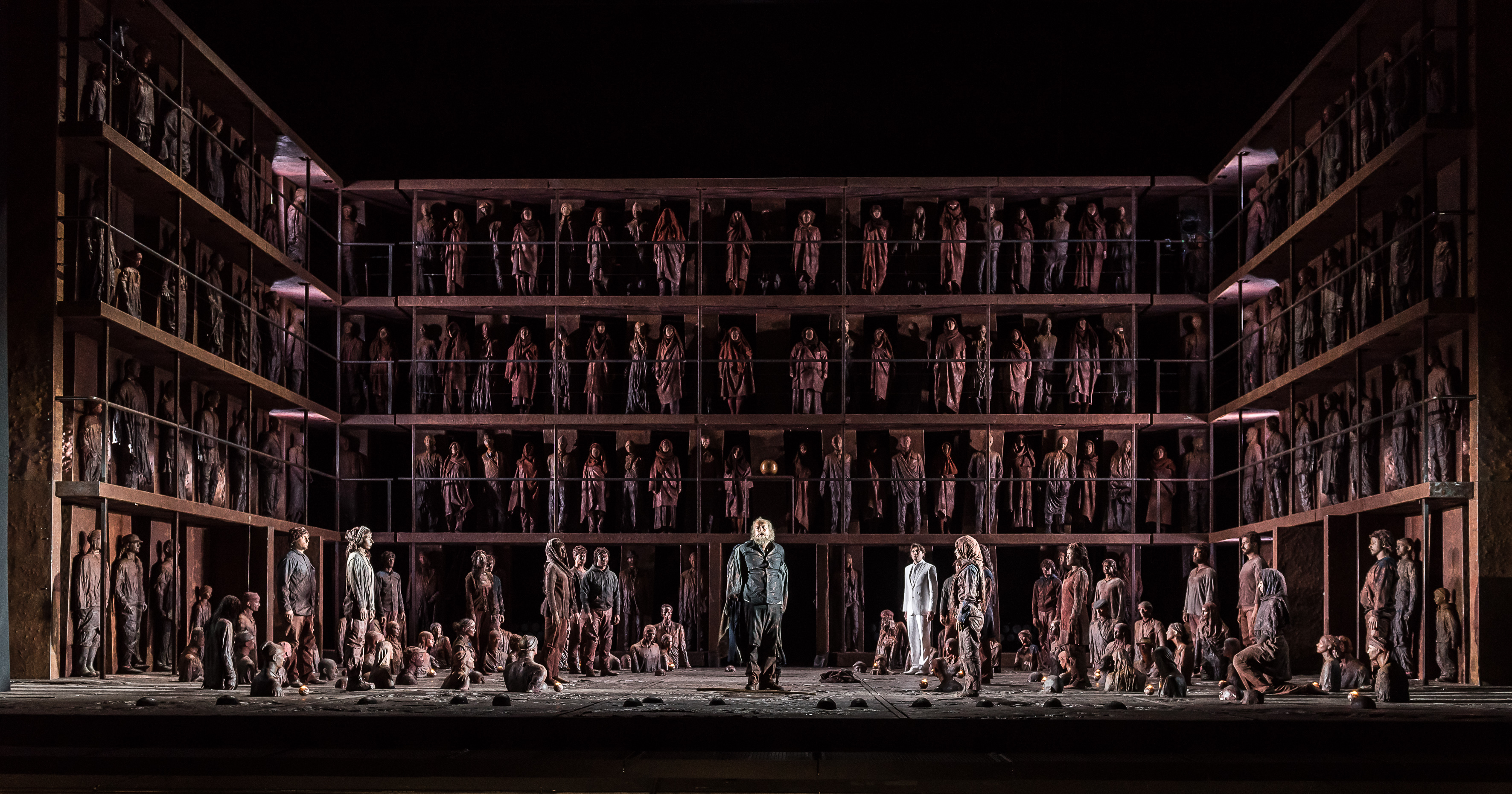 This run of Œdipe, of which tonight’s performance was the fourth, is the first at the Royal Opera House. For it they imported a production from Brussels, cast a group of fine singer-actors, and engaged one of the most exciting young opera conductors. Much like its subject matter, the work itself is a sprawling epic, tracing the course of a man’s life from before his birth to his eventual death. For the bass-baritone singing the title role, it’s an enormous undertaking since he appears on stage almost continuously. Perhaps the notable feature of the work is how within the narrative, what we see is effectively a sequence of dialogues for Œdipe with different characters. Some appear more than once, others have a single scene and are not seen again.