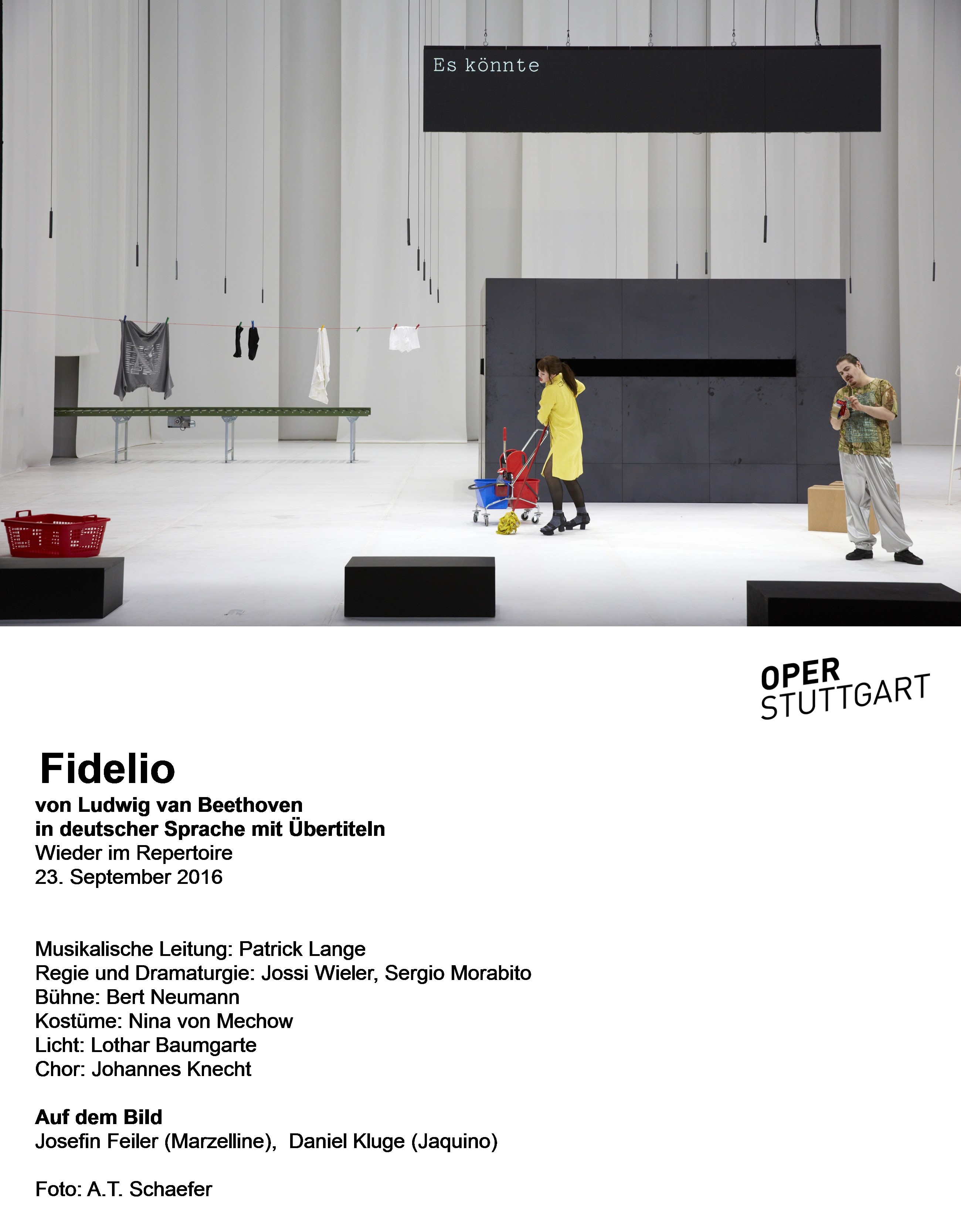 What is true freedom in a world where everything we do, everything we say is recorded?  That idea forms the central starting point of Jossi Wieler and Sergio Morabito’s 2015 staging for the Oper Stuttgart, tonight revived with a similar cast to the initial run.  Given the time of year and the changing weather, the cast wasn’t quite as planned.  Josefin Feiler sang with apologies for a cold and the originally-cast Pizarro, Michael Ebbecke, withdrew at lunchtime today.  The theatre was able to engage Daniel Henriks at the very last moment who sang from the wings while the co-director, Jossi Wieler, walked through the role.  The Oper Stuttgart was recently named ‘Opernhaus des Jahres’ by the German publication Opernwelt and tonight most certainly justified that accolade with singing and playing at the highest level and excellent production values.