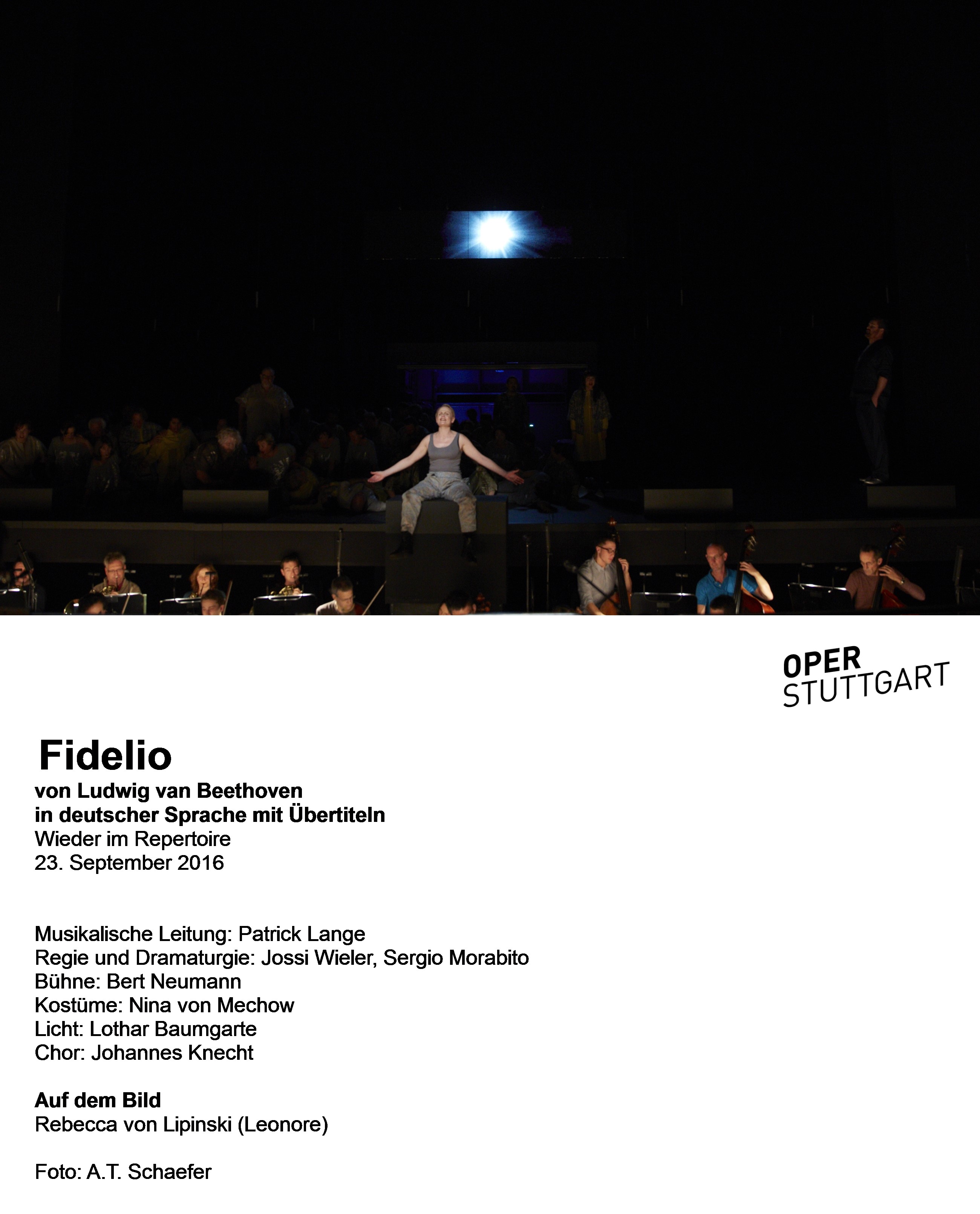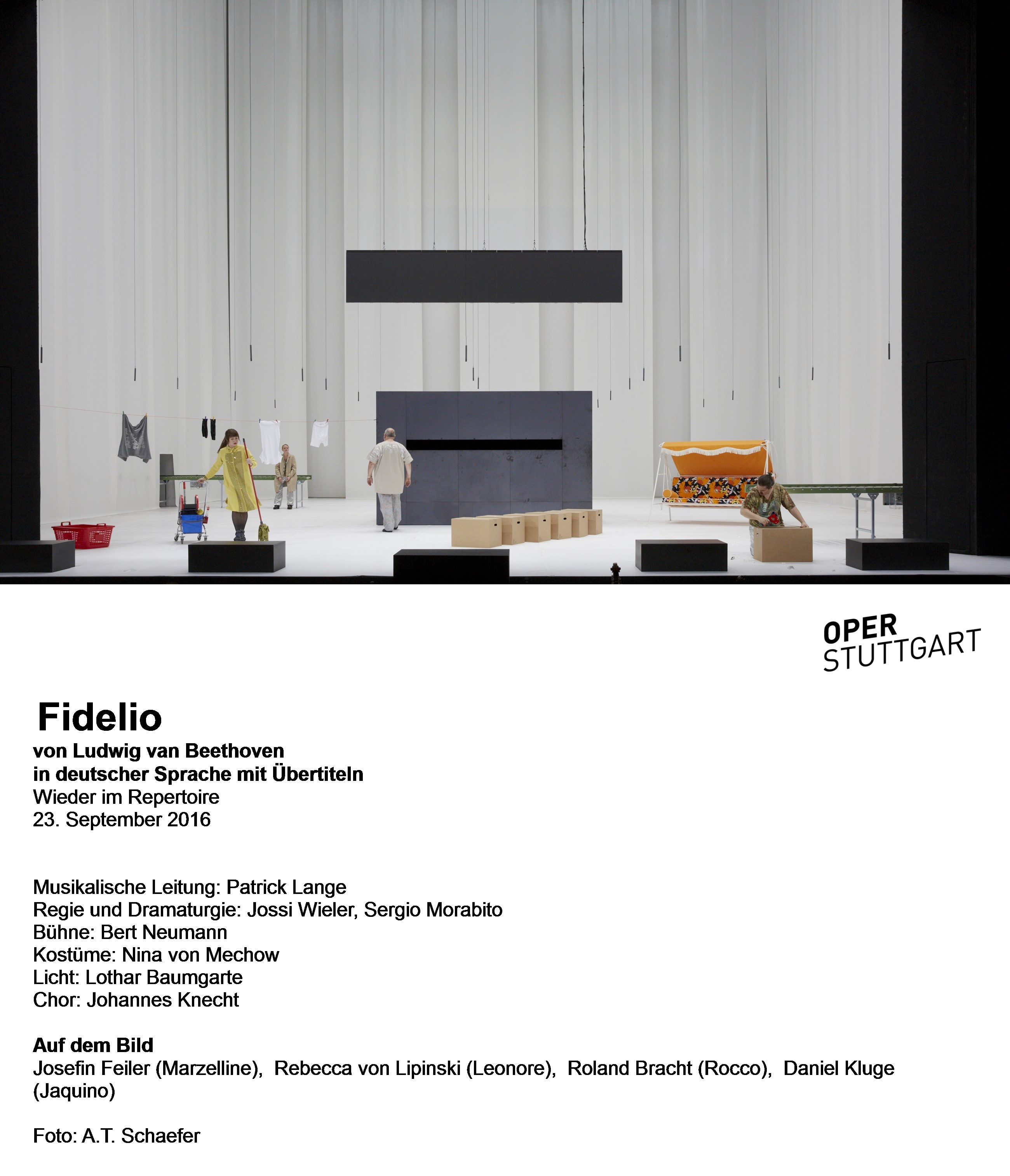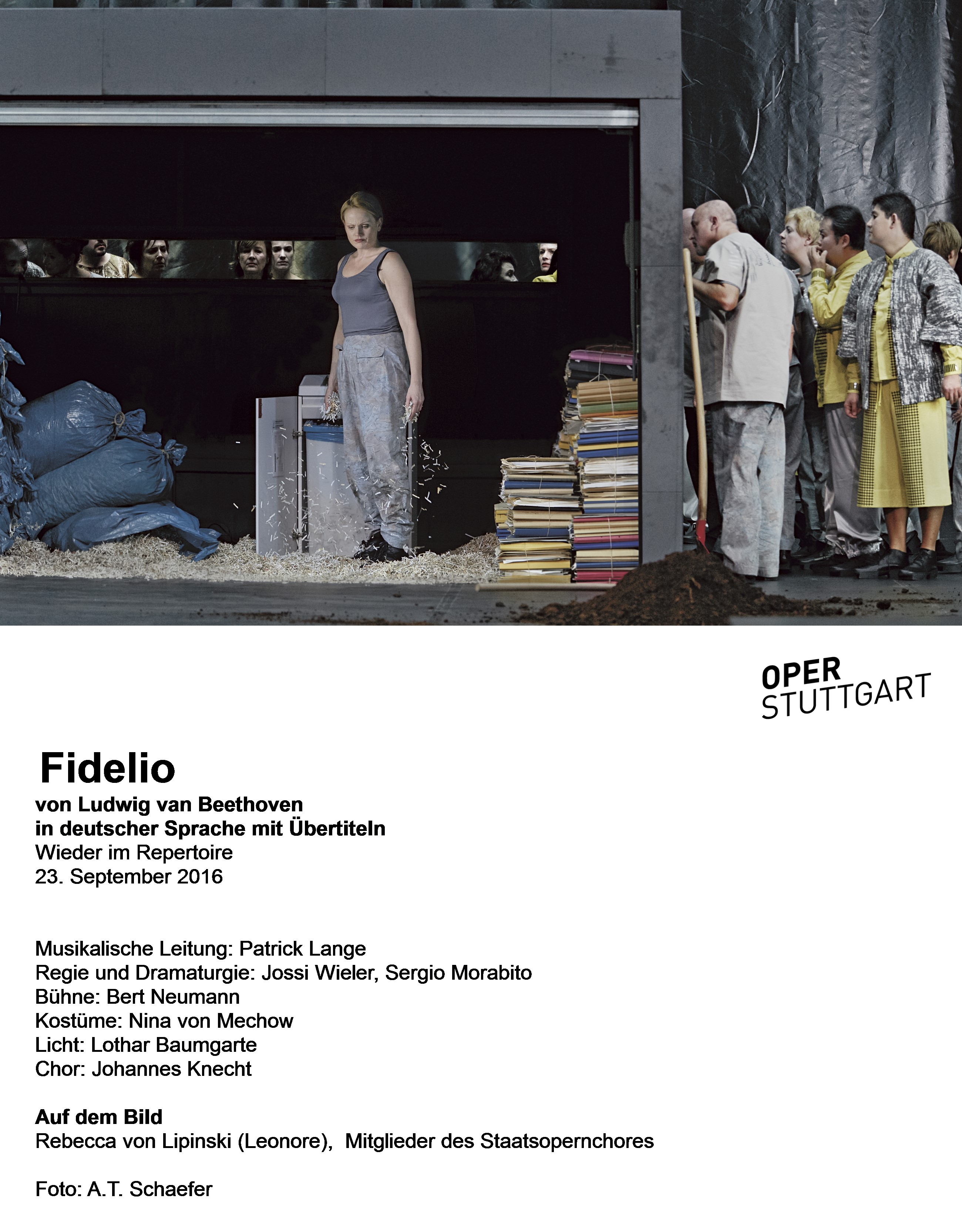 Fidelio von Ludwig van Beethoven in deutscher Sprache mit Übertiteln Wieder im Repertoire 23. September 2016 Musikalische Leitung: Patrick Lange Regie und Dramaturgie: Jossi Wieler, Sergio Morabito Bühne: Bert Neumann Kostüme: Nina von Mechow Licht: Lothar Baumgarte Chor: Johannes Knecht Auf dem Bild: Rebecca von Lipinski (Leonore) Foto: A.T. Schaefer