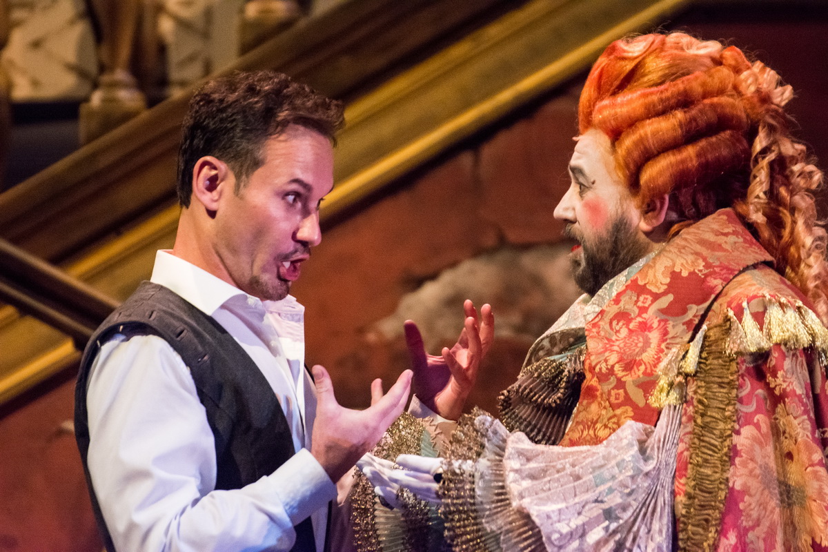 I’ll admit straight out that Don Pasquale has never been a favourite opera of mine but tonight I was completely won over by a cast who seemed to be having the time of their lives. Their energy and enthusiasm were absolutely infectious and the audience responded in kind by offering them whole-hearted ovations after every number. The staging was the work of Jerzy Stuhr, perhaps Poland’s most distinguished actor, film director and theatre professor. His long experience showed in personenregie that was detailed and vivid, creating characters who were thoroughly believable and who genuinely engaged with each other. Furthermore, he moved the chorus around the stage fluently in their brief interjections and even made them into a group of individuals as well as a corporate mass. Costumes and sets were traditional, the visuals sumptuous, yet despite that, the sheer engagement created by this skilled group of singing-actors made the entire evening come alive.