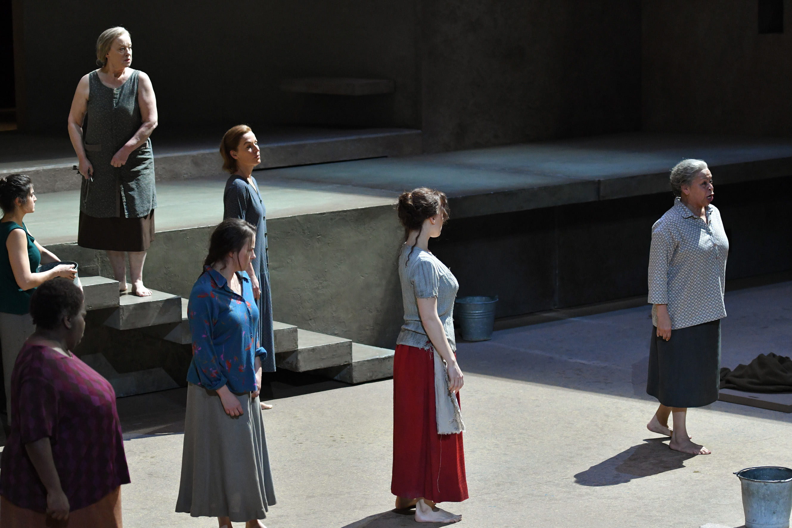 Evelyn Herltzius © Antoni Bofill The personenregie is highly intricate – so much is communicated through a glance or a tiny, imperceptible detail. At the very end, the Fünfte Magd extinguishes her candle as Orest walks away, as if to say that what needed to be done was done. We don’t know what happens next but what we can be sure of is that nothing will be the same again. This was a closed society living and dealing with unspeakable trauma. As a result of this, it may well be that the servants are suffering from Stockholm syndrome. Klytämnestra has a lot of power over them – just before she enters, we see them scurrying around and with her entrance, they fall prostrate at her feet. Whereas previously I hadn’t been convinced of why they would be so terrorized by such an apparently reasonable figure, tonight it was clear that Klytämnestra’s power came from her understatement and the power that comes from a fear that is perhaps more perceived than real and of dealing with living in a traumatized place. In that respect the staging could not be more timely. As Klytämnestra’s murder is revealed, the maids appear to be devastated by the fact, unable to reconcile living in a place where the rules no longer apply.