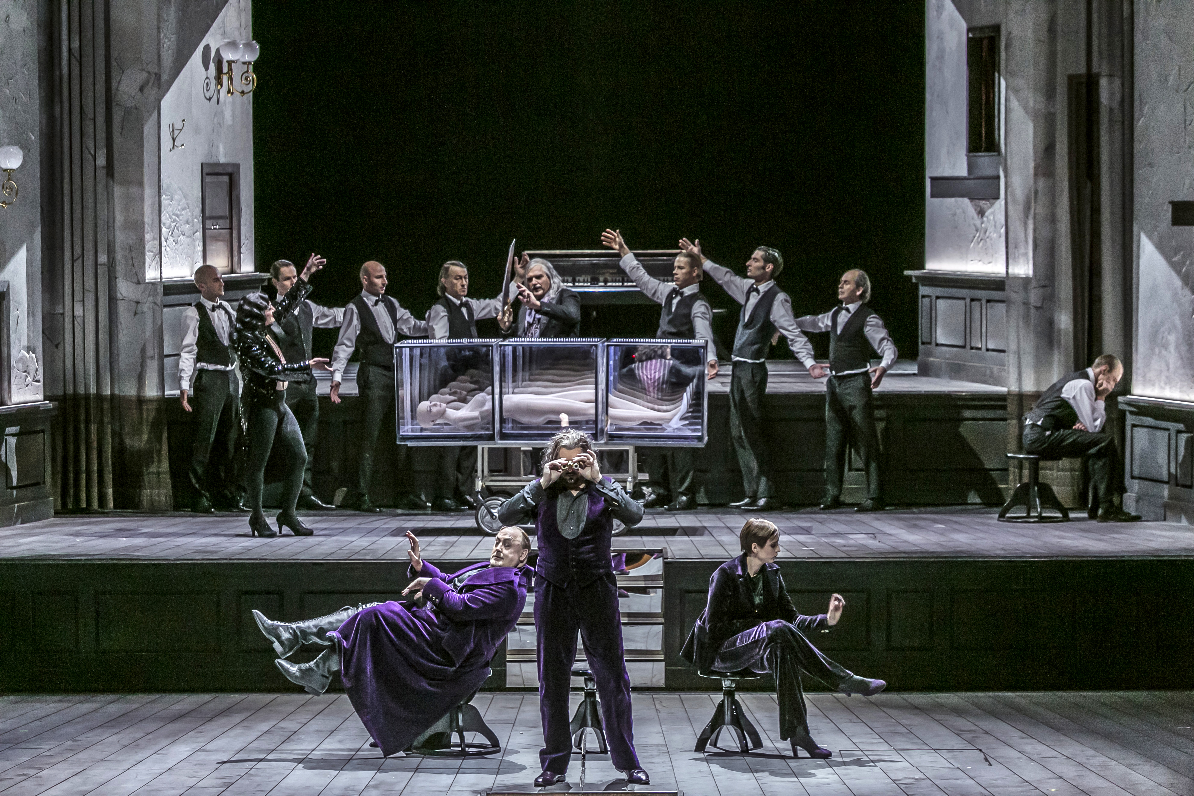 The remainder of the cast reflected the very high standards of the house. Aaron Pegram had real personality as the servants, singing in a healthy tenor with good French and a witty stage presence. I was also impressed by Tilmann Rönnebeck’s Crespel, sung in a handsome full-bodied bass. The house chorus was exceptional, easily one of the finest opera choruses I’ve heard based on tonight’s evidence. The blend was excellent – no unattractive war of vibratos here – and they sang with exhilarating theatre-filling amplitude. There was one slight passage of slack ensemble at the start when they were at the back of the stage but otherwise ensemble was excellent. The orchestra had some very raw string tone towards the end of the Olympia act and there were a few other moments where there were some tuning issues. That said, the solo clarinet played beautifully and the brass were excellent all night. Frédéric Chaslin’s conducting I found interesting. At its best it was unobtrusive, allowing the singers through and allowing the action to proceed. At times, however I felt he let the energy sag too much – in the Miracle/Antonia duet for example – and it felt that it needed pushing ahead a little more.