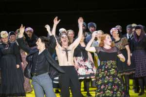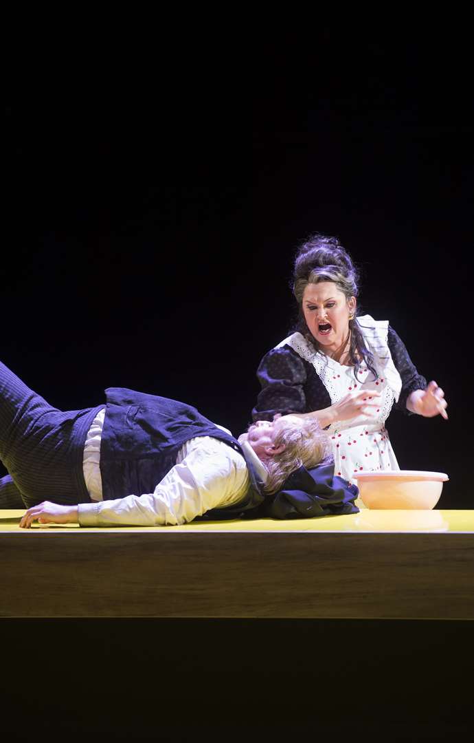 Kosky was also lucky to have some excellent singing-actors with whom to work. Agnes Zwierko camped it up magnificently as Khivrya. I can’t say that when I woke up this morning that I was expecting to see this Polish mezzo demonstrate so convincingly how stuffing a turkey could be so erotic. The role sits awkwardly in the passaggio but she negotiated it with aplomb. She most definitely lit up the stage whenever she appeared.