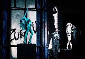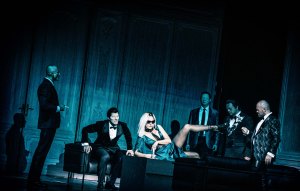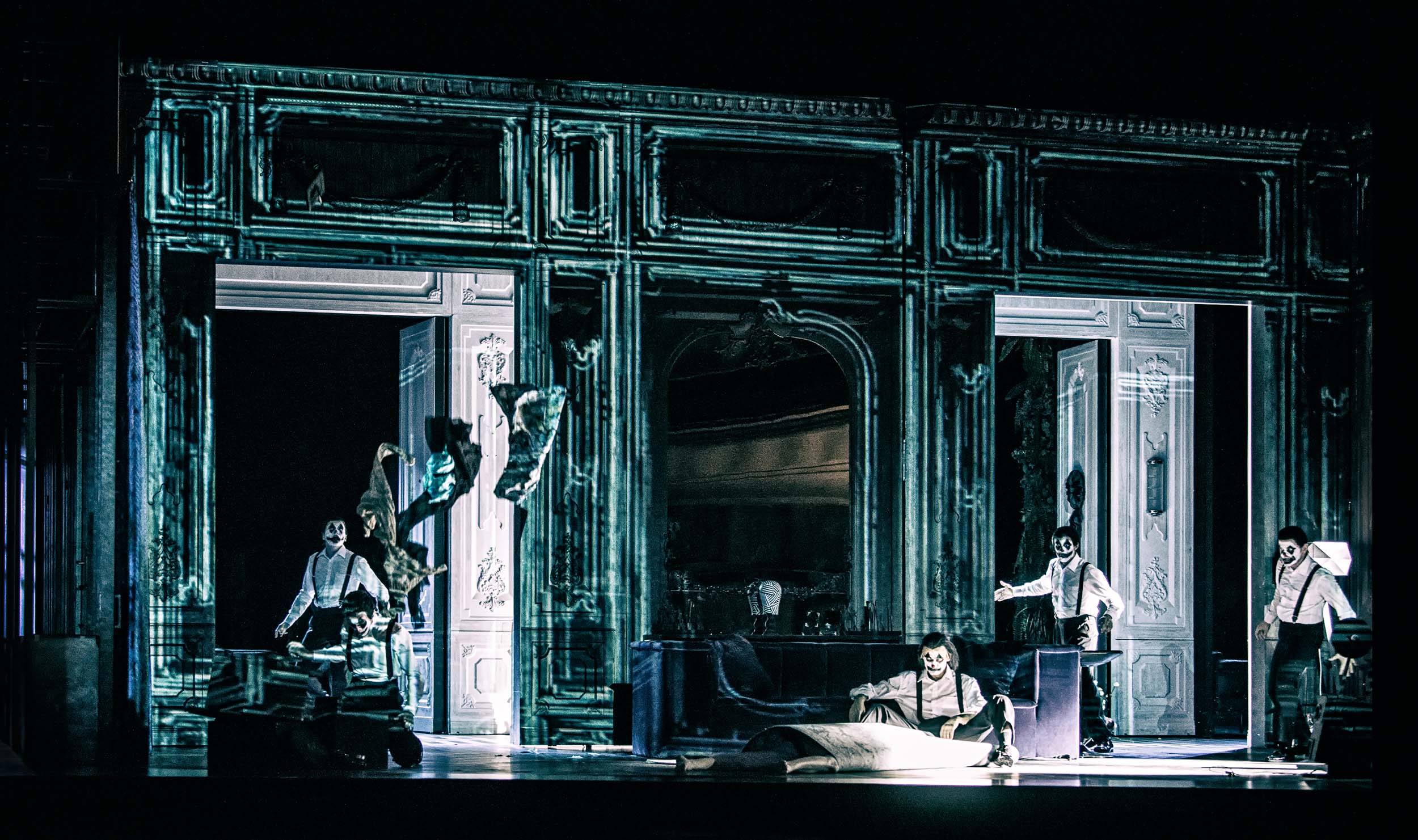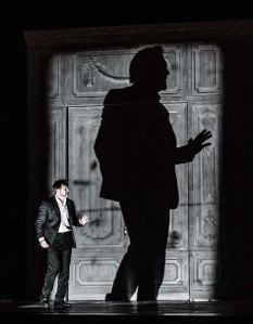 The black and white movie aesthetic was also brought out in the costumes and lighting, with Marietta’s otherness reflected in the fact that she wore a green dress and Marie’s ghost was a dancer in a white dress, both contrasting with the monochrome costumes of the others. Treliński also gave us several impressive coups de théâtre – Marie’s body hovering seemingly in thin air as Marietta manipulated it in the graveyard scene. I found that it wasn’t just a technically impressive staging, it was also a detailed illustration of a man’s descent into madness and obsession through grief.