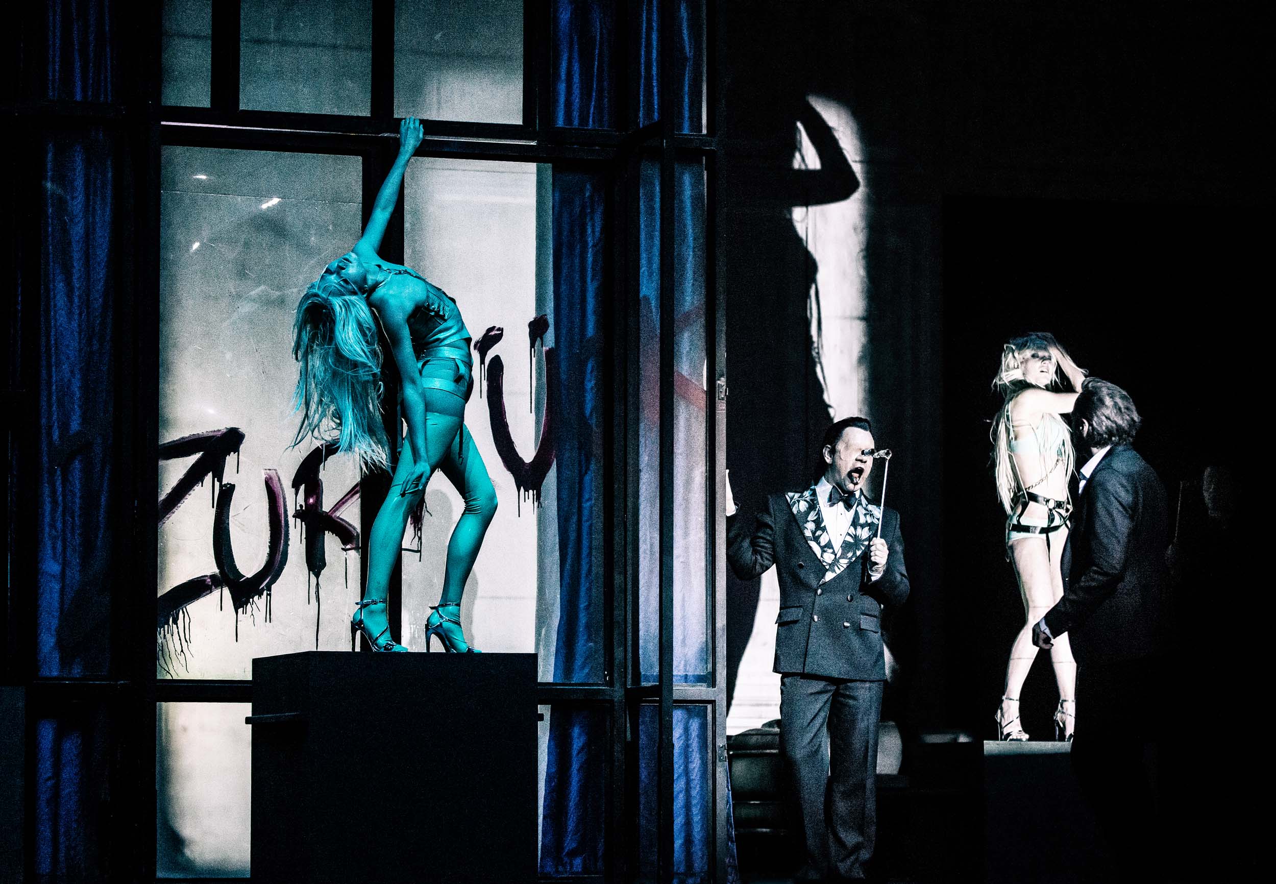 Marlis Petersen was very fine in her dual roles, in a way a cousin of her acclaimed Lulu, similarly calling on her magnetic ability to dominate a stage. The voice has quite a sweet exterior (though never sounded saccharine) with a creamy core that seemingly defies gravity. So much of what she did was through using the text to colour the tone. She phrased her music with real beauty and her clarity with the text meant that the Polish and English surtitles felt superfluous. The voice blooms beautifully on top with a ravishing hint of vibrato. Certainly a notable assumption.