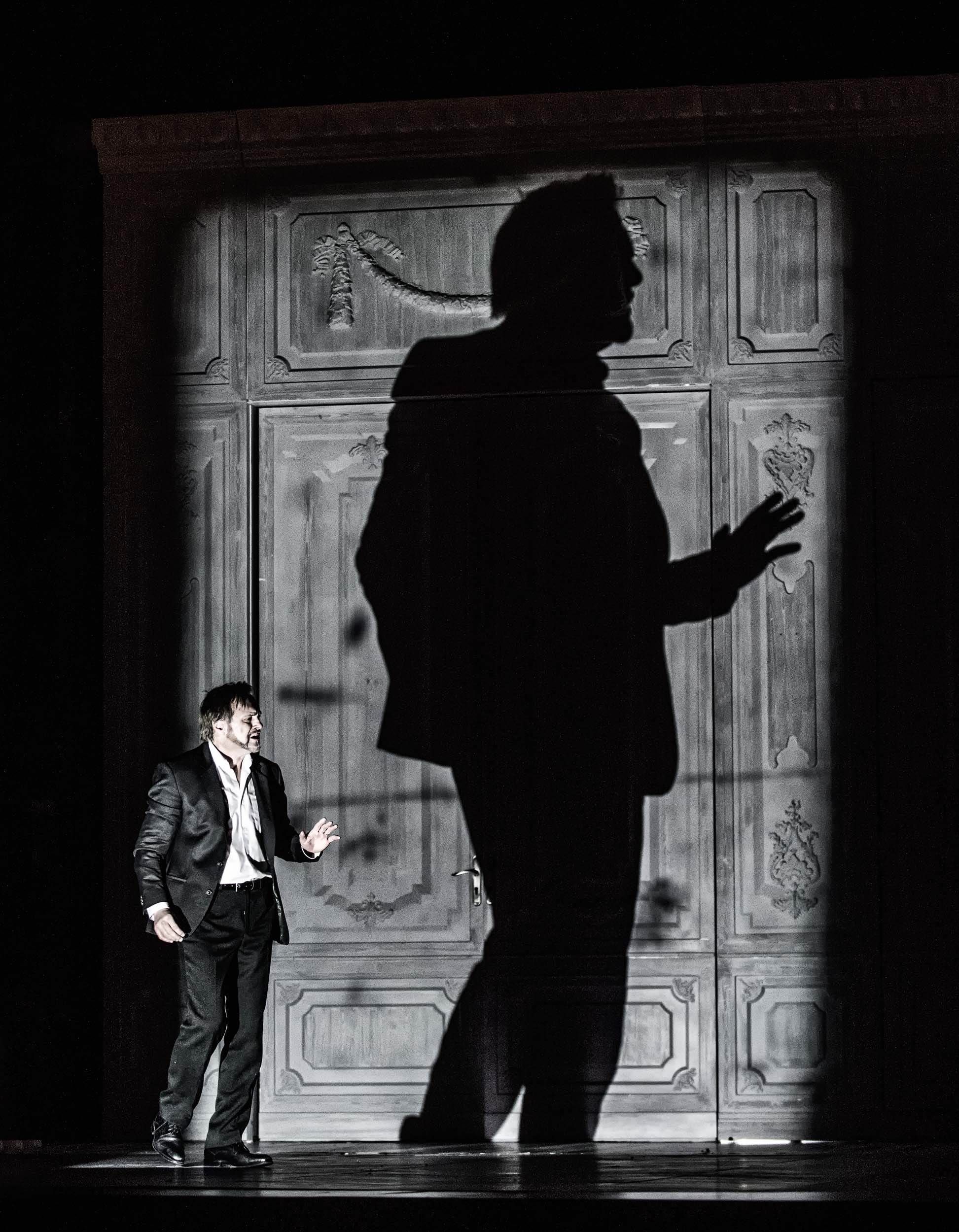 The staging was the work of the Teatr Wielki – Opera Narodowa’s artistic director, Mariusz Treliński. In it, he provided a dream world apparently inspired by black and white gothic movies, where we were not sure what was real and what was in fact a dream. Treliński demonstrated some phenomenal stagecraft – making use of a revolving stage and atmospheric lighting (Marc Heinz) that at times made us question whether the walls of the set even existed. The staging felt exceptionally fluent. What Treliński also brought out successfully is how for Paul, his apartment is his world. In this respect it’s also true to Rodenbach’s novel where the equivalent character of Paul, Hugues’s only initial contact with the outside world is his daily walks. It’s when he leaves the apartment and routine that things start to fall apart for him. Here, during Act 1, the stage was in constant motion but when he stepped outside in Act 2, the city was barely revealed, existing in that liminal state between real and tangible with the singers on a run way over the pit and one character walking into the audience.