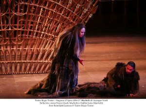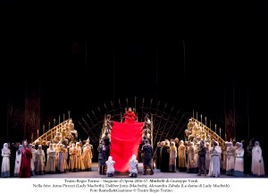 As is so often the case, there were a few changes to the advertised cast for this Macbeth. The originally-billed conductor, the Regio’s music director Gianandrea Noseda, withdrew due to injury and was replaced by Giulio Laguzzi. Shortly before curtain up, an invisible voice announced that Marko Mimica would step in to sing Banco – Mimica was already scheduled to sing in the alternate cast.