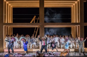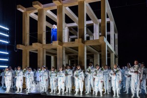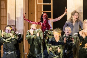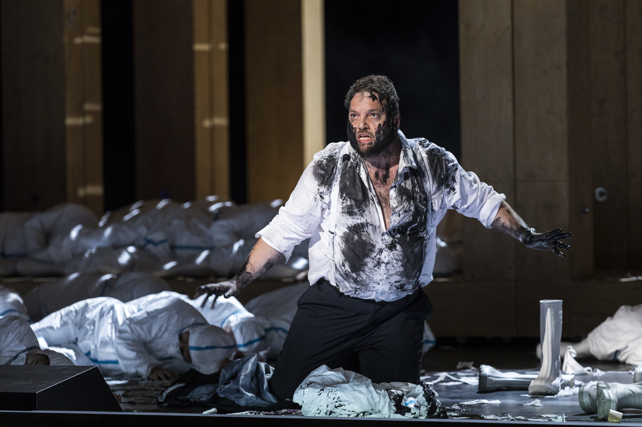 Photo: © Ludwig Olah The sheer intelligence behind the staging, attention to detail, not to mention the complete conviction with which the vast forces executed Bieito’s vision, completely won me over. If this was a dramatically overwhelming performance, musically I’m afraid it didn’t quite have the same impact. The text was certainly clear but often, Roswitha Christina Müller’s Cassandre excepted, it felt that many in the cast were singing over the text rather than with it. The house chorus, bolstered with the extra chorus and additional guests, gave us singing of staggering impact and power – the tenors especially impressing with their strength of tone and shining through the texture. The extreme dedication of the massed forces to everything asked of them was overwhelming – whether as a homogenous block or as a mass of individuals. The sound was huge, with blend and tuning absolutely spot on. They had clearly been exceptionally prepared by Tarmo Vaask.
