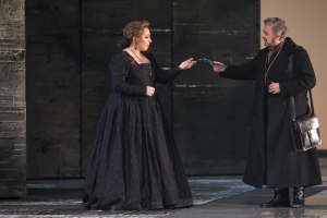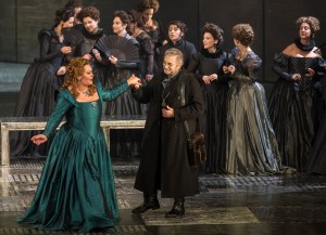 Urmana’s Eboli is of course a known quantity. She tore up the stage in her ‘don fatale’, giving us a barnstorming rendition, refusing to hold back. The top is most definitely still there with a fabulous high B-flat at the end, taking on exciting amplitude. She also negotiated the corners of the veil song with ease and included a genuine trill. Urmana made Eboli a much more complex and rounded character than we often see. She shaded the tone, making use of a range of vocal colours, to bring home Eboli’s remorse to Elisabetta, for example. The registers may have started to part company but Urmana is a consummate artist and transcends this. Alexander Vinogradov was a much healthier and younger Filippo than we often hear. His is a typically lugubrious eastern European bass with a slightly acidic edge. The text wasn’t always as clear as it could have been but his legato is impeccable and he sang ‘ella giammai m’amò’ with great feeling, bringing Filippo’s frustration and powerlessness to life. The confrontation between him and Marco Spotti’s Inquisitore was tremendous – both fresh voices, sparring and striking sparks off one another.