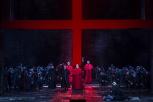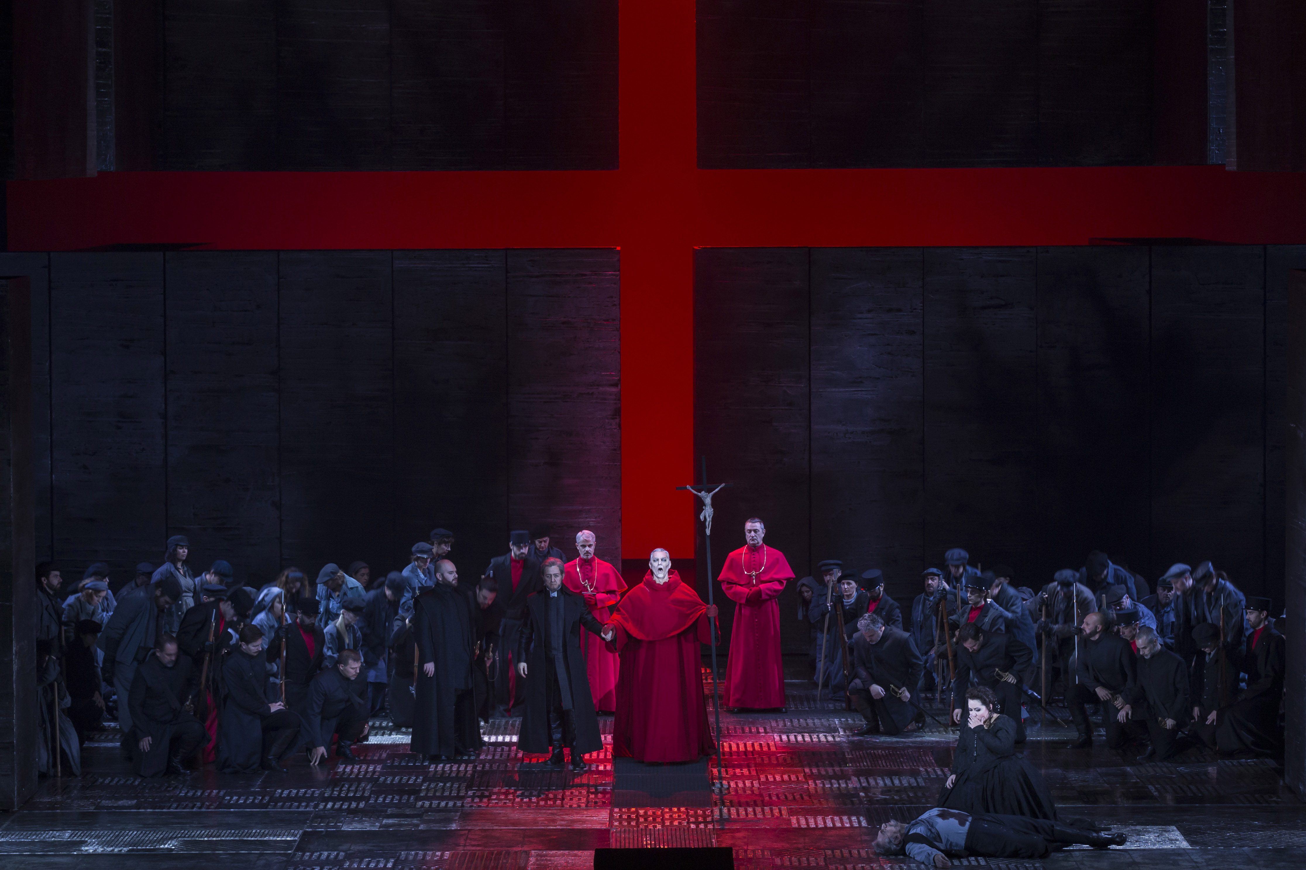 Tonight, didn’t quite feel completely settled – the conducting felt episodic and lacking in a long term view – but this is not unusual for a first night. Marelli gives us such an intelligent staging, a musing on power and the role of religion in sustaining that power. He also gives us more than that – he makes the work about a group of living characters who are products of their environment. It was very well sung on the whole and is most certainly worth making the journey to see.