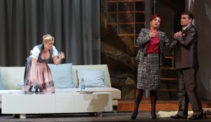 Peter Sonn was a light, lyrical Eisenstein – perhaps somewhat too light as he didn’t quite impose himself in the ensembles in the way that one might have expected. He also demonstrated some fine comic timing and his native diction was a pleasure to hear. Similarly, Eva Mei’s Rosalinde lacked some weight in the middle register where much of the role sits, the voice somewhat soft grained in the middle. She is also a fabulous actress – her spoken Magyar accent in the party scene was spot on – and she lit up the stage whenever she appeared. In the Czardas, the higher reaches opened up nicely and she turned the corners splendidly. Berrugi was a terrific Alfred – with a winning sense of humour, wishing to engage in the parody of the Italian tenor. His is a warm, generous and handsome voice with genuine ping at the top and he savoured the German text with real charm. Michael Kraus was somewhat dry of tone as Frank but still has stage presence to spare.