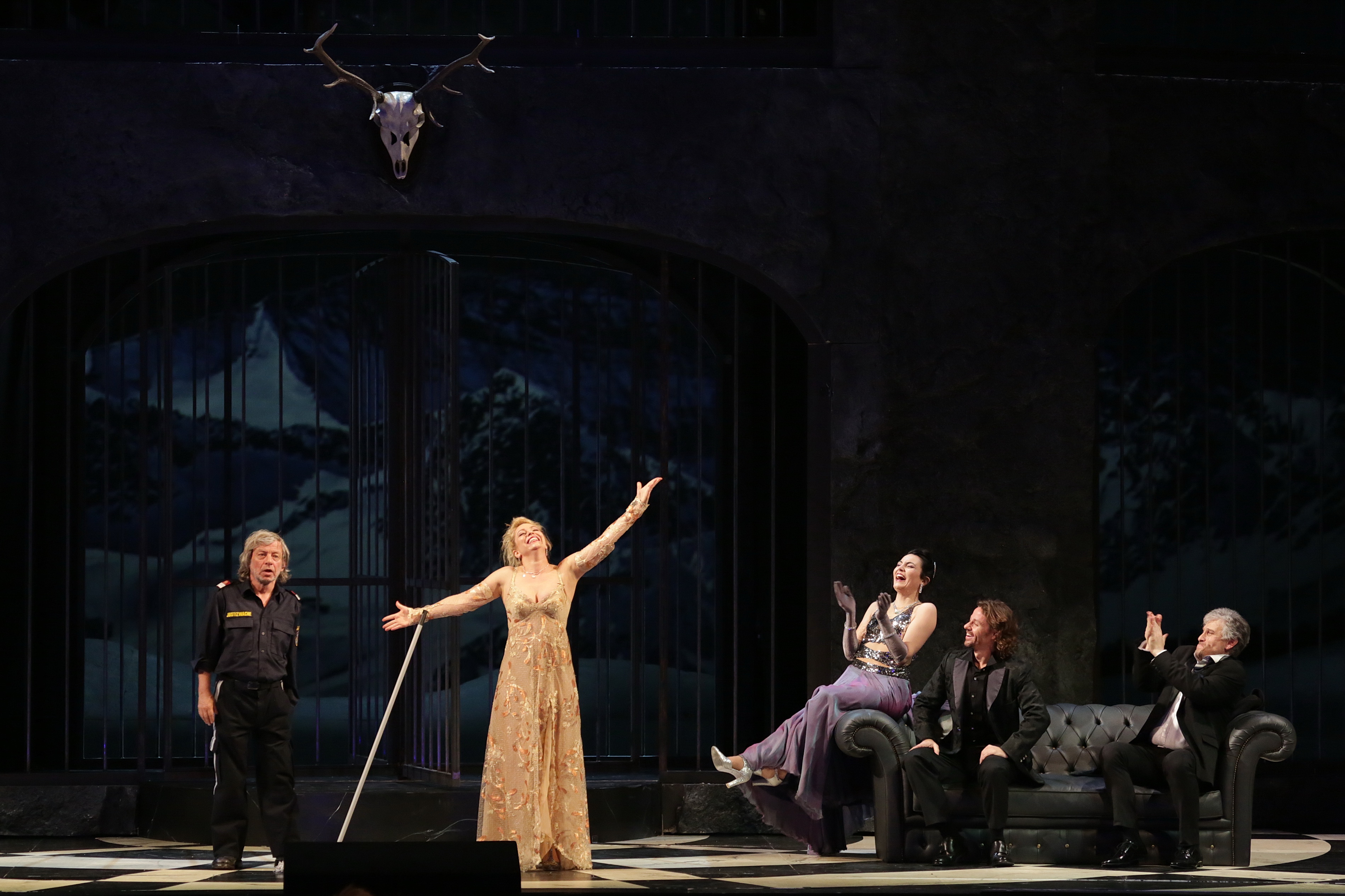 Perhaps there was no other way to follow last night’s supremely intense Peter Grimes in València than with a comedy and this afternoon’s Die Fledermaus at the Scala most certainly fit the bill. This was the last performance of the run. There was a genuine sense of a cast enjoying every moment of their final show together and this enthusiasm was absolutely infectious for the audience. The Scala gathered together a notable cast, composed of Italian, Austrian and Russian singers in a new staging by Austrian director Cornelius Obonya. Instead of urban Vienna, the setting was an Alpine village, the snowy mountains and starry skies visible in the background. This could have been a town on the Austro-Italian border as the rewritten dialogue switched between Austrian German and Italian, not to mention the French in the meeting between ‘Renard’ and ‘Chagrin’. There was also a hysterically funny moment as Orlofskaya launched into English as Falke announced she was in Austria, she hearing Australia, before correcting herself to speak in German.