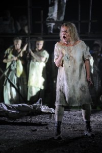 I must admit that when I was offered the role, I said yes because it was a chance to work again with Calixto [Bieito] and then I went to YouTube to listen to the music.  I thought ‘wonderful, she’s just marking all the time, this is something very light’.  I knew that I would be rehearsing Salome at the same time and I thought it would be a good combination – a light part alongside Salome which requires much more power.  I was then unpleasantly surprised to find it was extremely uncomfortable, it’s not very well written, for the voice.  Now I understand why that singer was marking because you can’t sing this role with the full voice all the time, it feels as if the voice doesn’t want to open up.  It’s an extremely tricky role.