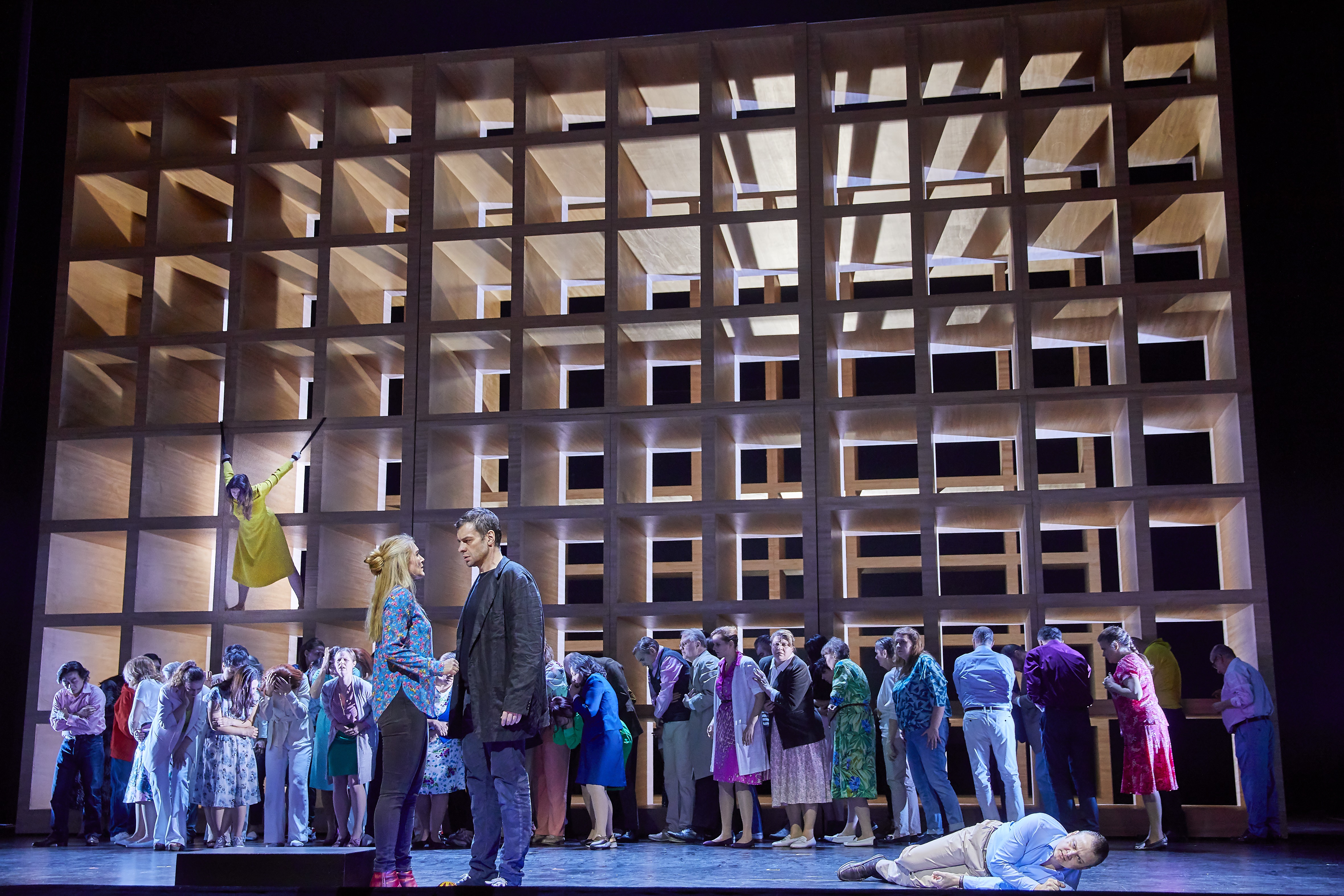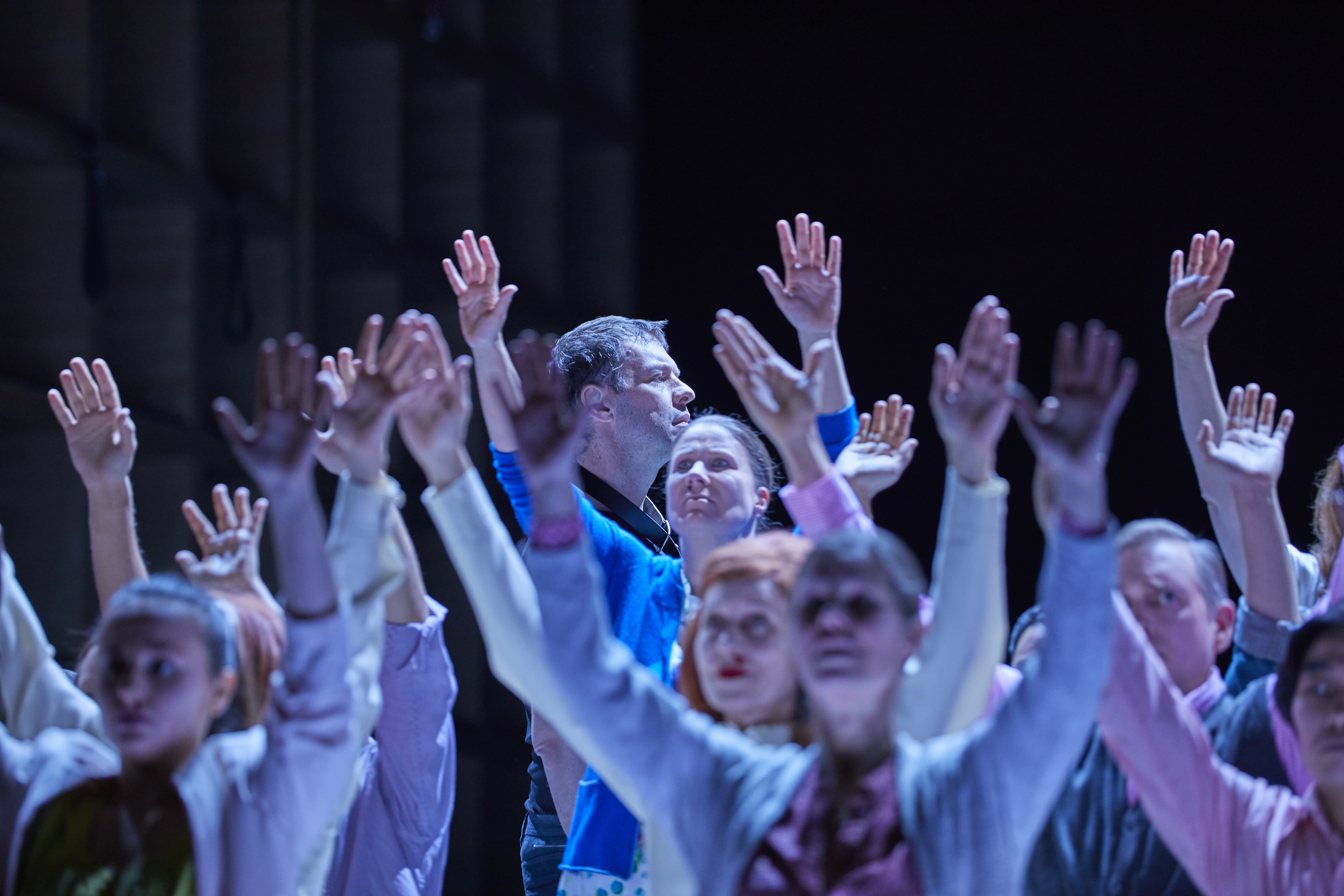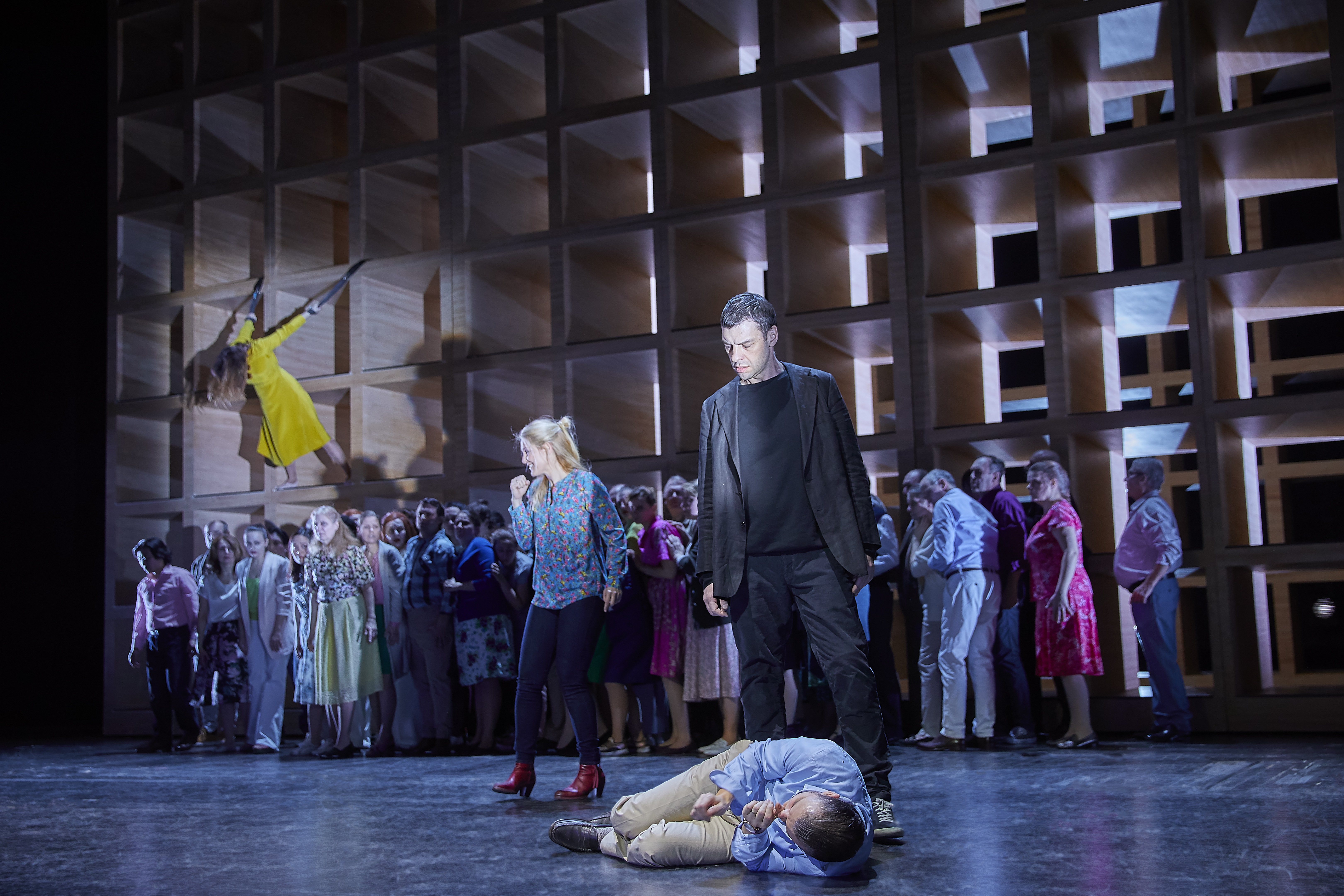 Bieito is, of course, known as a superlative director of choruses and the Hamburg chorus was extremely committed. He populates them with a wide range of characters – they could be baseball fans, teachers, lawyers. There was one lady, dressed in the sensible suit of a bank manager, pouring out much venom at the soprano in the ‘dies irae’. Indeed, the choral sopranos as a whole were unafraid to make sounds that were less than beautiful in order to fully bring out the violence of the text. The seventy ladies and gentlemen sang as if their lives depended on it. The tone was vibrant, though never with any sense of individual voices sticking out, and they maintained excellent discipline of ensemble throughout, despite the very active staging. The theatre-filling sound was most impressive.