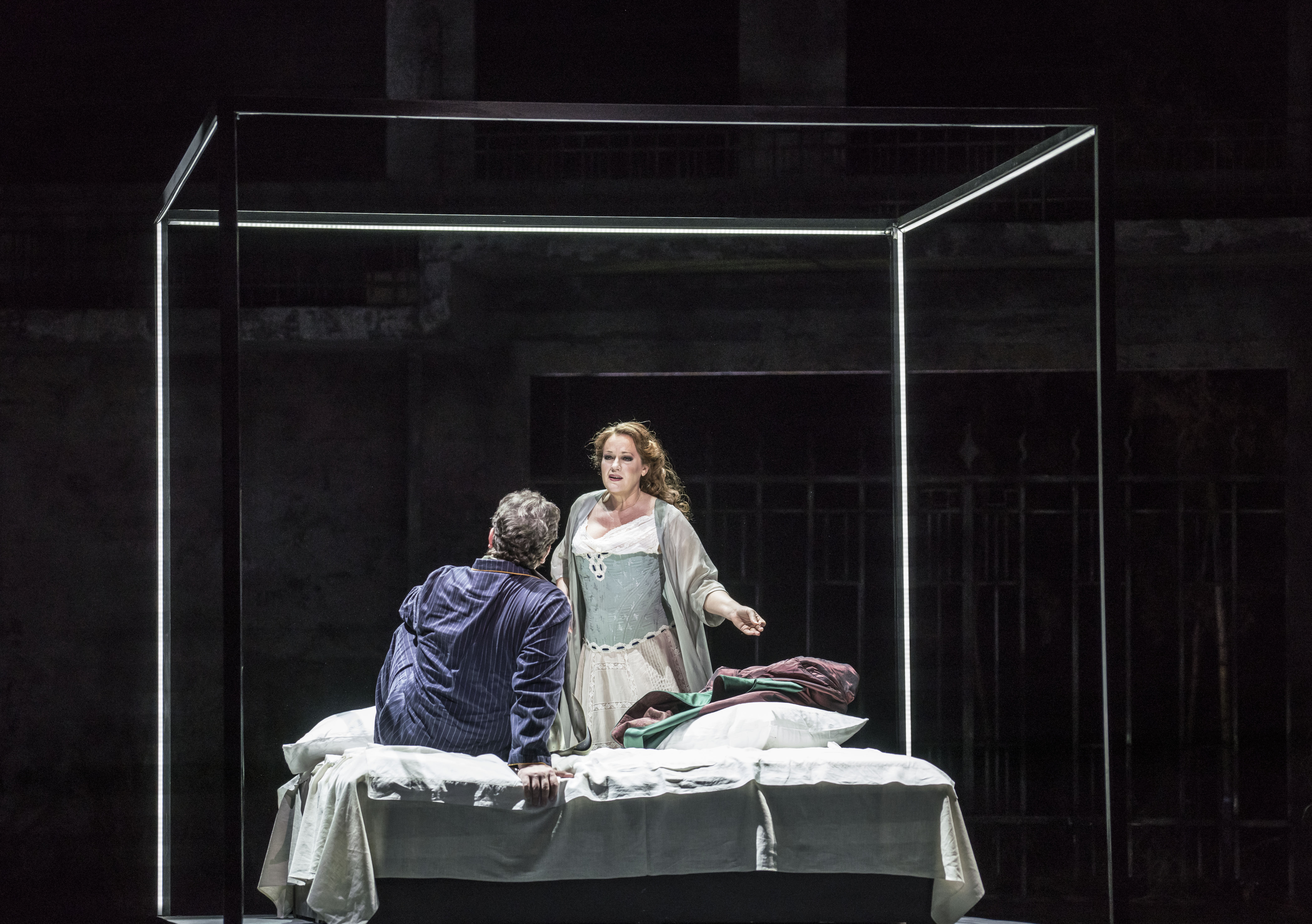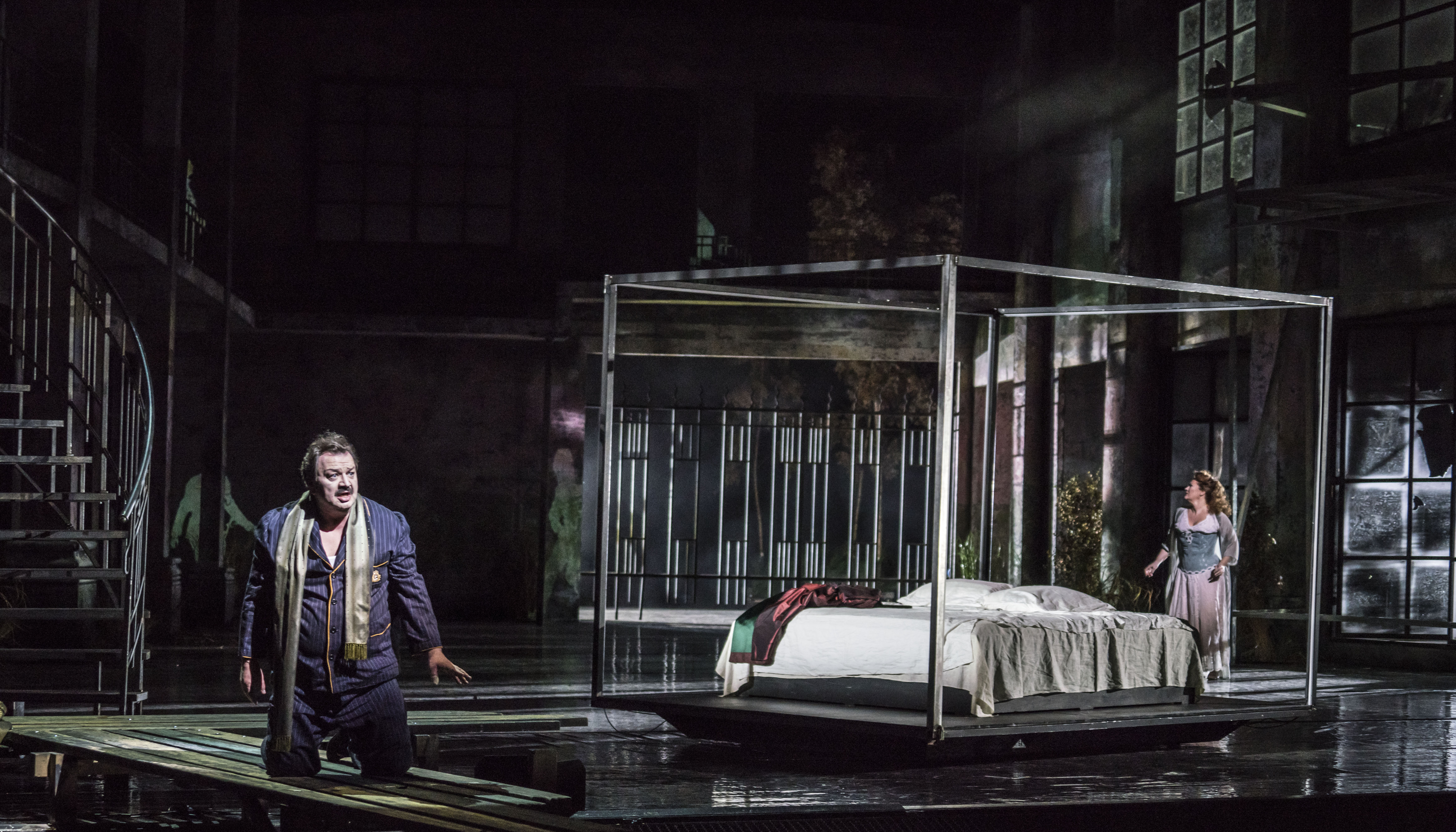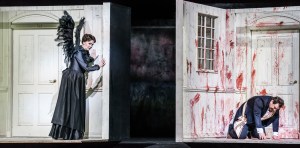 As a cantata, this is a work where characters sing about others rather than necessarily to them. To that extent, although there is a narrative thread that unites the work, it could be said that the structure itself is somewhat anti-dramatic and, certainly initially, one might wonder what there is to gain from staging it. As one might expect, Audi gives us something that isn’t a conventional opera. Characters are identifiably flesh and blood, but the relationship between them is intimated. So much is communicated through a glance or a touch, rather than characters singing at each other. Audi often manages to transcend the potential balance issues by often having singers at the front of the stage, addressing the audience, just when they need to ride the surging orchestral textures. In another context, this kind of delivery might seem a disadvantage; here, it seems intimately married with the work and Waldemar and Tove’s doomed love. Much is also communicated through the set (Christof Hetzer). As the Waldtaube sings her lament, we see Waldemar trapped in a room covered in blood, desperately trying to understand and come to terms with that has happened. Similarly, at the end of Part 1, the use of video (Martin Eidenberger) manages to show Waldemar’s castle disintegrating just as he loses what really matters to him. Yet, what we are witness to is not just a love story. We are taken through a man’s journey to the darkest place as he comes to terms what he has lost. Audi also points to the end of an era. When the work was premiered in 1913, Europe was on the brink of the Great War but also, in its high romanticism, Gurrelieder marks the bridge between the end of Schoenberg’s early style and his adoption of serialism.