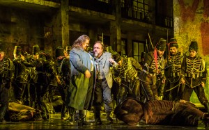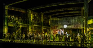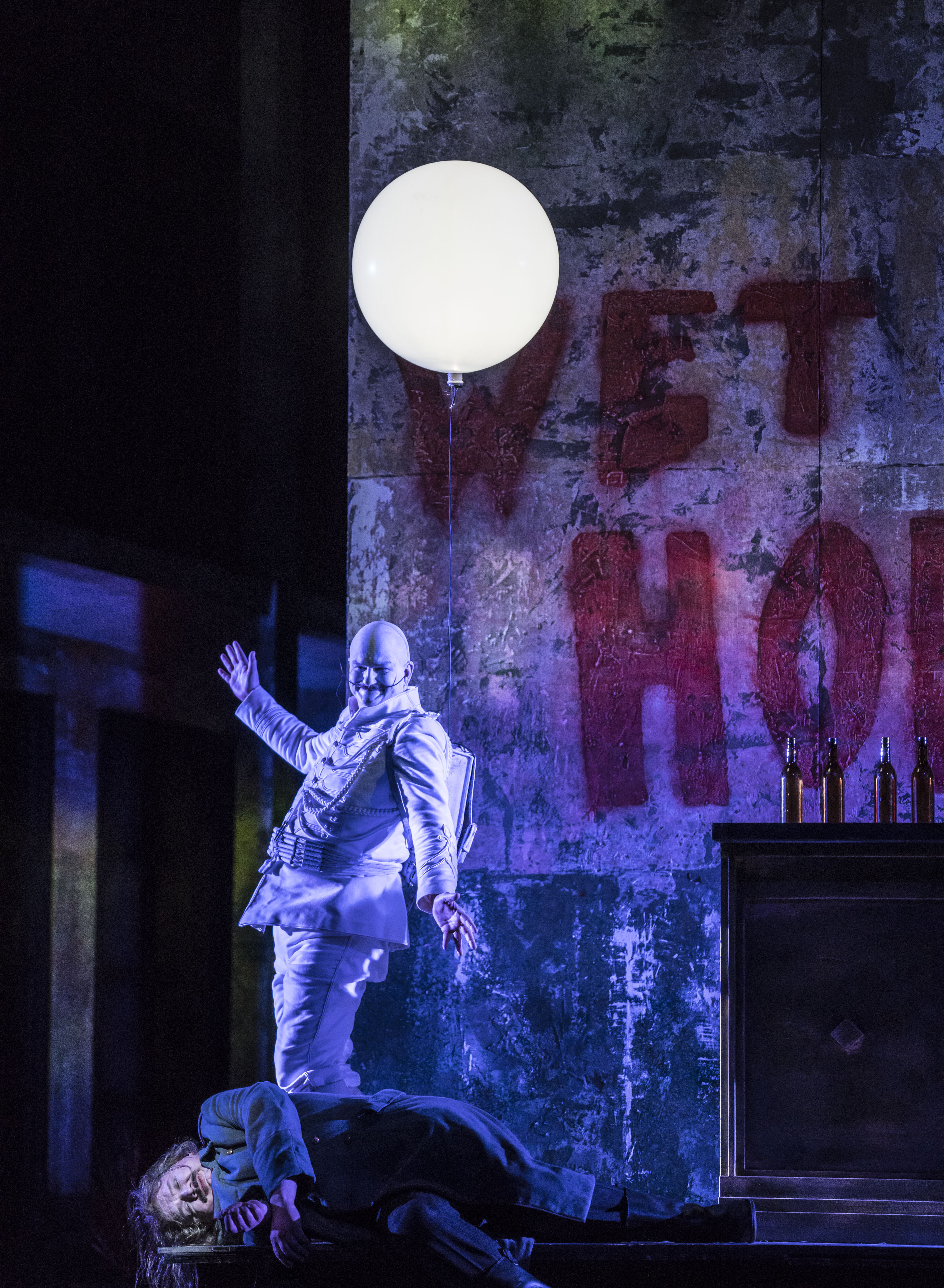 We were given staggering singing by the Nationale Opera chorus, bolstered with guests from Essen. That they were able to execute complex stage movements (including waving their swords in the air) and navigate Schoenberg’s intricate, multi-part writing is quite remarkable. They sang the chorus ‘Der Hahn erhebt den Kopf zur Kraht’ offstage and the accuracy of the tuning was impeccable. Perhaps the ladies were somewhat blowzy in their contributions to the closing chorus but the accuracy and precision of the gentlemen inspired admiration.