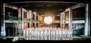 Ultimately, the question remains of whether Audi’s Gurrelieder works as a staging and here, I think that it does. Rather than a dramatization, Audi gives us an illustration of the work. It feels of a piece with Schoenberg’s score – the sense of burgeoning love is there, as is the harrowing descent of a man into an alcohol-fuelled abyss. It offers visually striking moments that seem ideally married to the score’s nocturnal tinta. The evening culminated in a blaze of light that had overwhelming impact – the brightness of the sun combined with the glorious noise produced by the massed choruses.