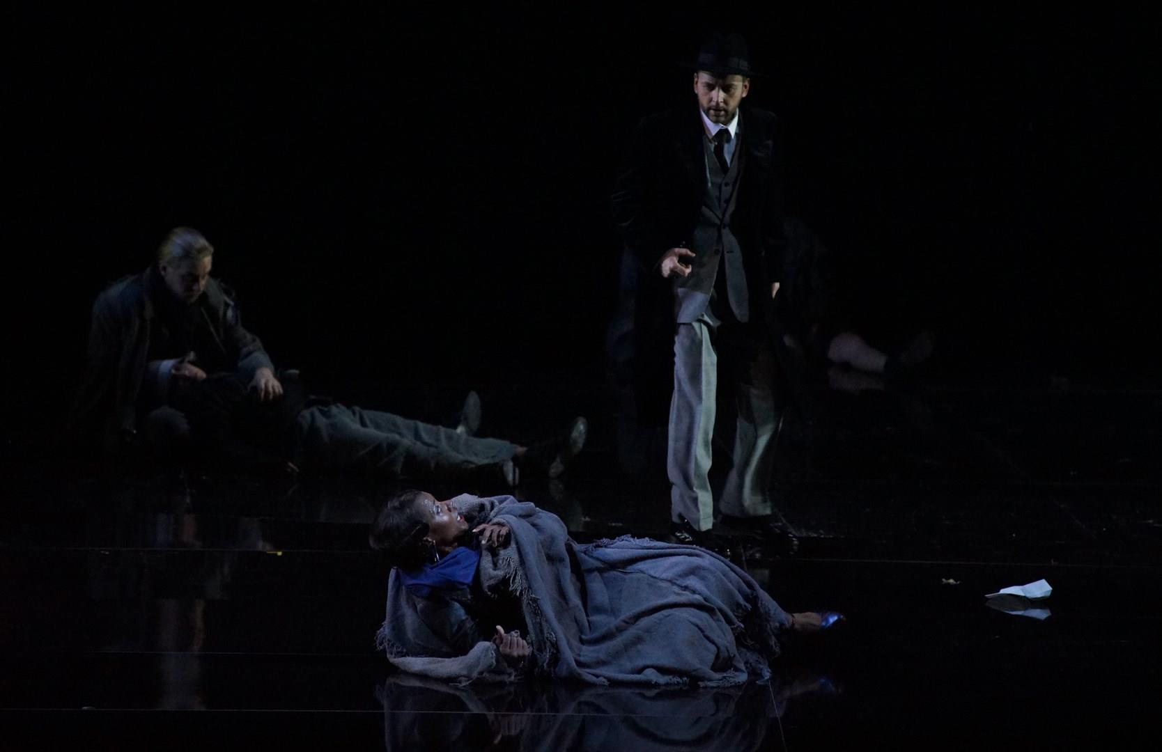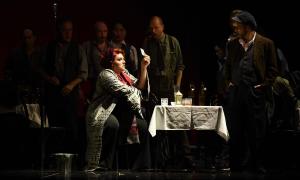 The narrative is always presented to us clearly and cogently. The personenregie succeeds in creating real flesh and blood characters and the stage action moves along efficiently and effectively. It did feel that the staging lost its way somewhat at the ‘orrido campo’. Set in a shady place, where women sit on the streets with their babies and men snatch them to take them away, it’s also the scene of Amelia’s drug taking – she, desperately searching for a fix. Yet this idea of Amelia having a drug habit/dependency, as a result of her particular situation, is something that is briefly taken up but then no longer explored. It could certainly have provided an interesting angle to develop but it was picked up and otherwise left aside. Nevertheless, this was a competent and intelligent staging.