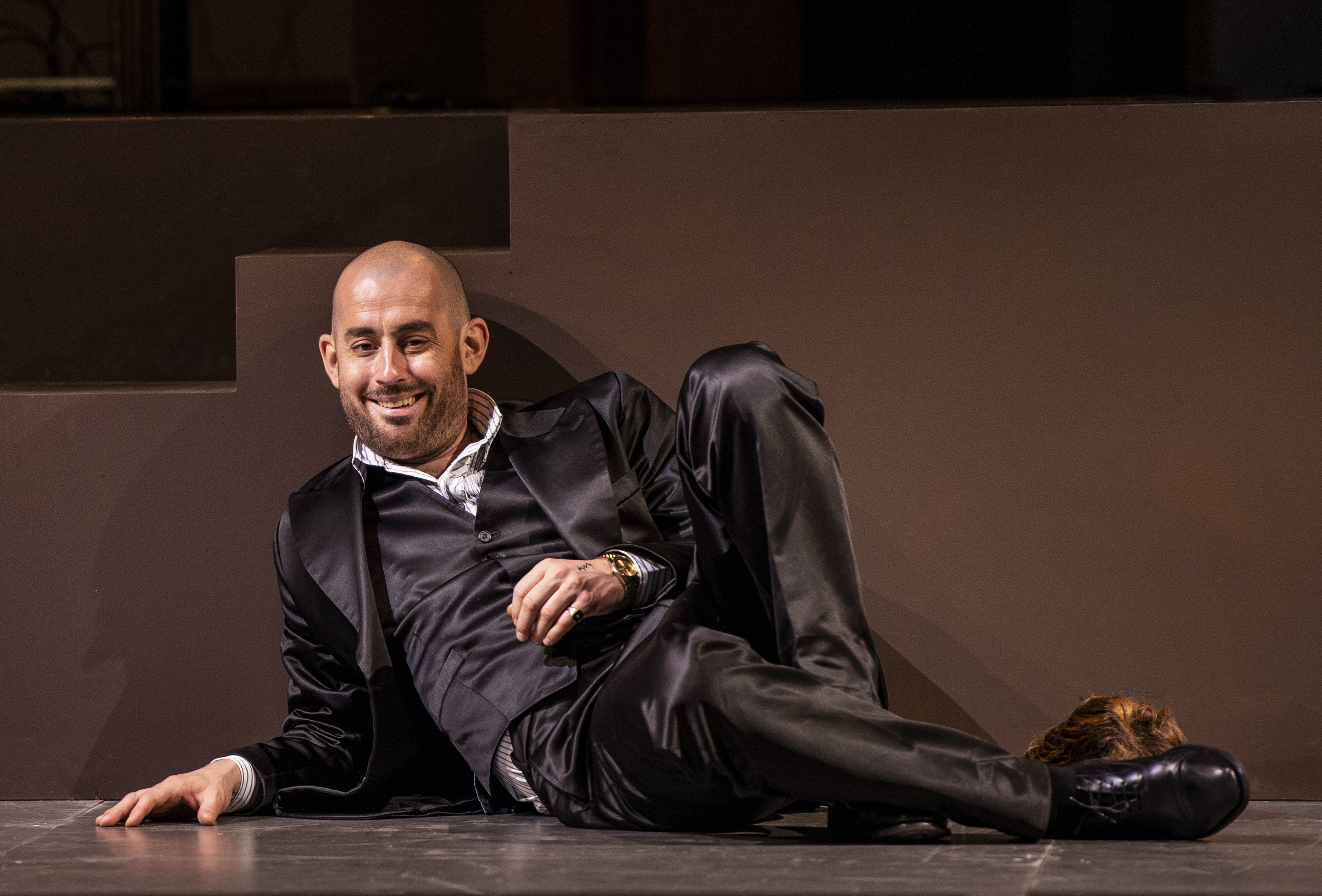 While this aspect of the obsession and objectification of Giovanni is cogently argued and provided a very convincing thread through the evening, I’m not quite convinced by other aspects of Jones’ staging. He isn’t the first director to remove the giocoso from the dramma, yet at the same time it felt a bit underdeveloped. Having Leporello dancing with jazz hands during the champagne aria seemed disconnected to the rest. Similarly, I’m not quite convinced by why and how the Commendatore managed to rise himself from the dead for his dinner date. Given the highly realistic staging, the insertion of the supernatural seemed illogical – though it would be hard to see how Jones could have set it up otherwise. There is an absolutely fascinating plot twist at the end. Without giving spoilers, suffice it to say that it’s an extremely clever move from Jones.