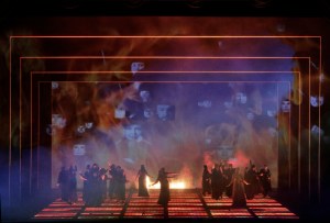 As in the Siegfried, there were also issues with the placement of singers on stage. Daniel Brenna’s Siegfried is not the biggest voice to have essayed the role, and the opening duet with Iréne Theorin’s Brünnhilde sagged in tension as Runnicles needed to keep the orchestra down to allow Brenna through. Had he been placed at the front of the stage this would not have been an issue. As in the previous evenings, there was a fair bit of standing and delivering to the front. The chorus was marched on, then across the stage and back off efficiently. The gentlemen of Ian Robertson’s chorus made a magnificent noise – big, impeccably tuned, the tenors especially firm, and well blended. The orchestra was on tremendous form. There were a few more imperfections than in previous evenings – the strings, whose playing has been impeccable all week, were a little stretched in the fleet tempo Runnicles took for Siegfried’s ‘Rheinfahrt’ – and there were a very few brass slips in a few places. Despite that, they played like heroes, fully deserving the massive ovation given to them as they took their final curtain call on stage. Runnicles again led a swift reading, though he pulled back in the ‘Trauermarsch’ to build it up with inexorable tension. He exploited the full range of colour available to him in the band and the closing pages soared with uplifting hope.