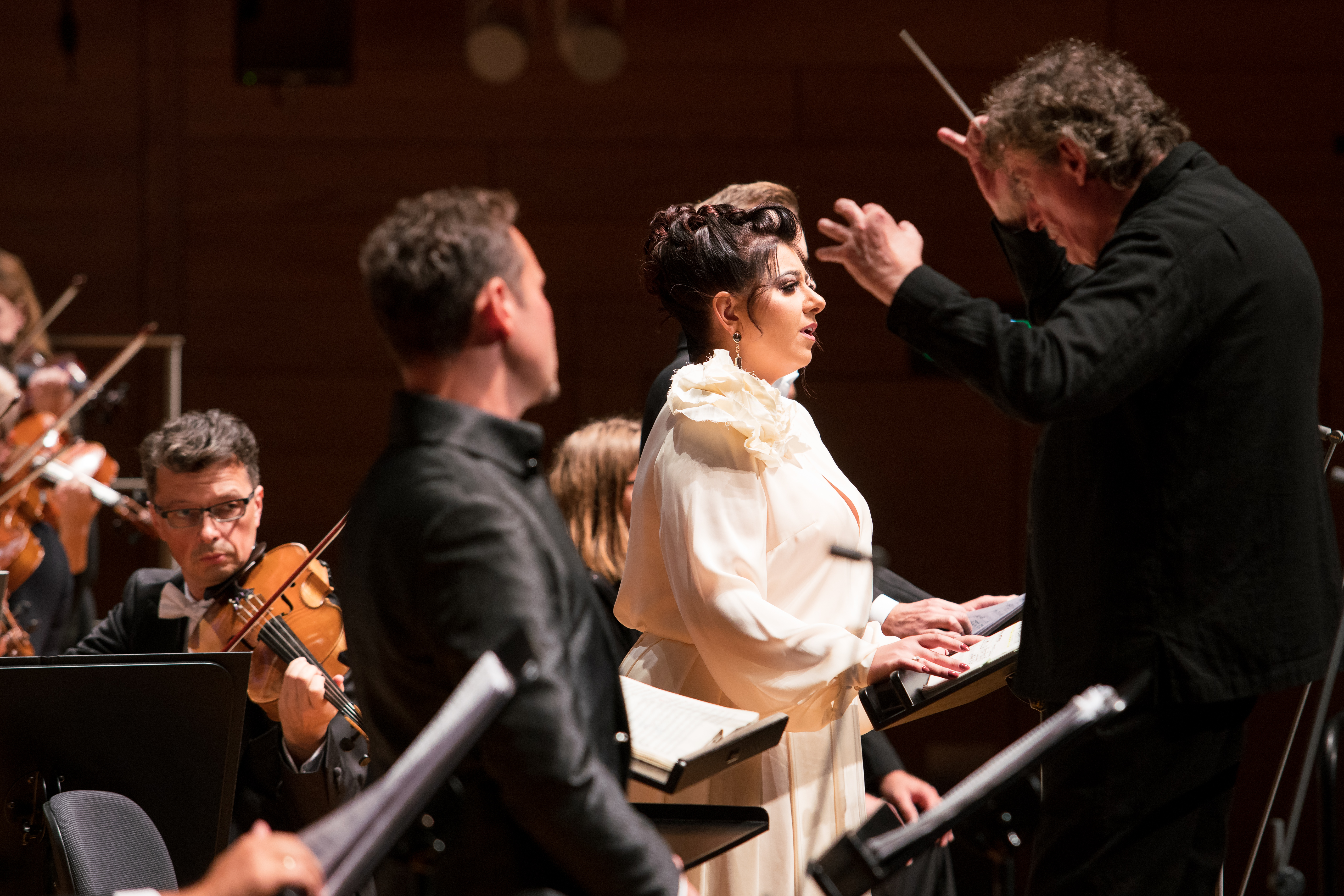Król Roger is a mysterious work – one that reveals its truth slowly, open to multiple readings.  Is it a work about the seduction of hedonism or a man’s acceptance of his own true nature?  Is it about one man’s love of a beautiful stranger or a man’s devastation as his wife succumbs to that stranger?  Without the trappings of a staging, in concert Król Roger becomes an even more personal experience.  One brings to it one’s own interpretation of the text and understanding of what lies beneath the surface.  Performed without intermission, we got a ninety-minute arc of a journey deep into a man’s psyche, performed with thrilling immediacy by Mariusz Kwiecień’s Roger.  Of course, the disadvantage of the concert setting is that the size of the orchestration can overwhelm the cast, with the singers in front of the band rather than being able to carry over the forces in the pit.  Fortunately, Jacek Kaspszyk’s singer-friendly conducting allowed the cast through where necessary.  It also meant that the climaxes were physically overwhelming, overtaking this listener in a blaze of sound.