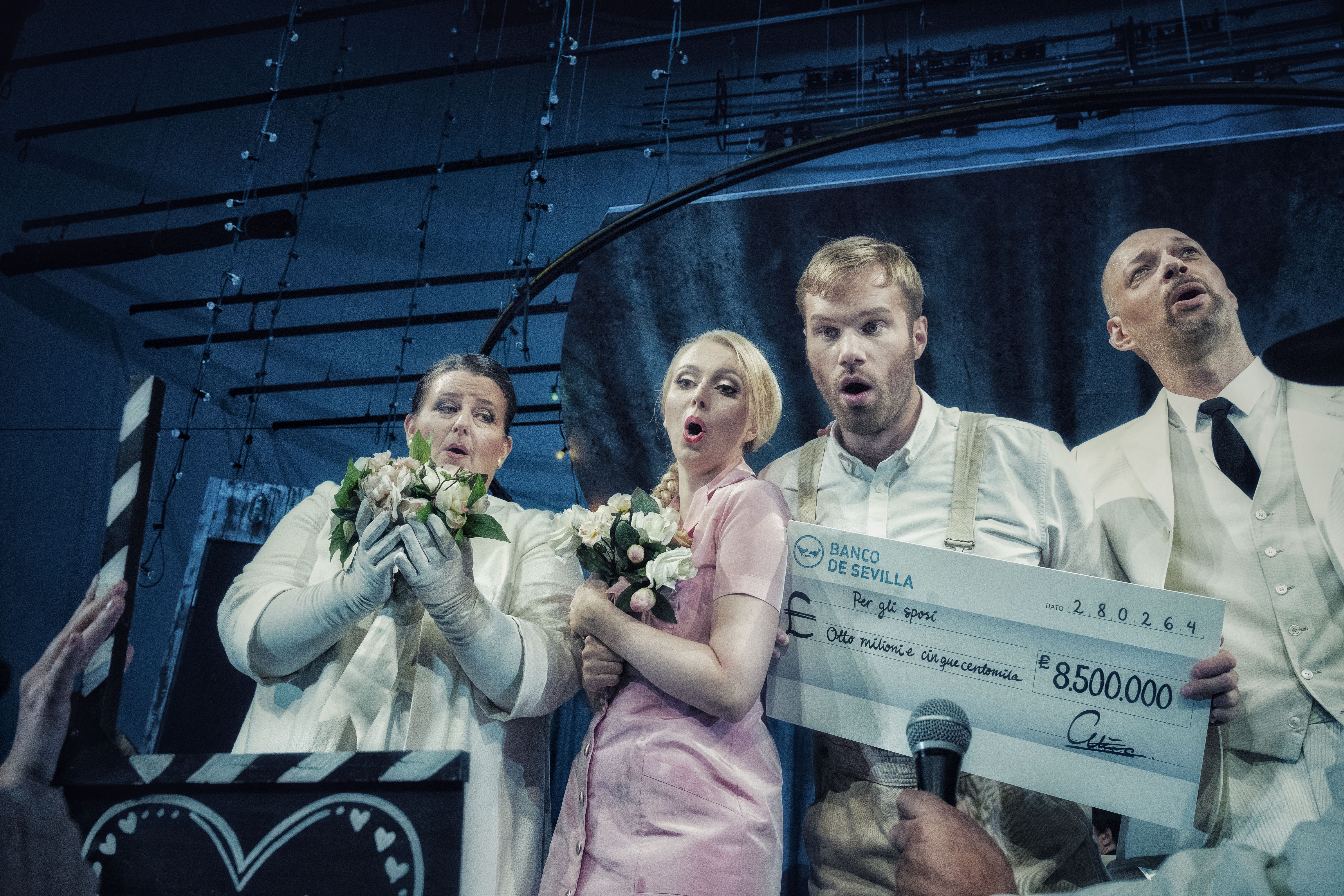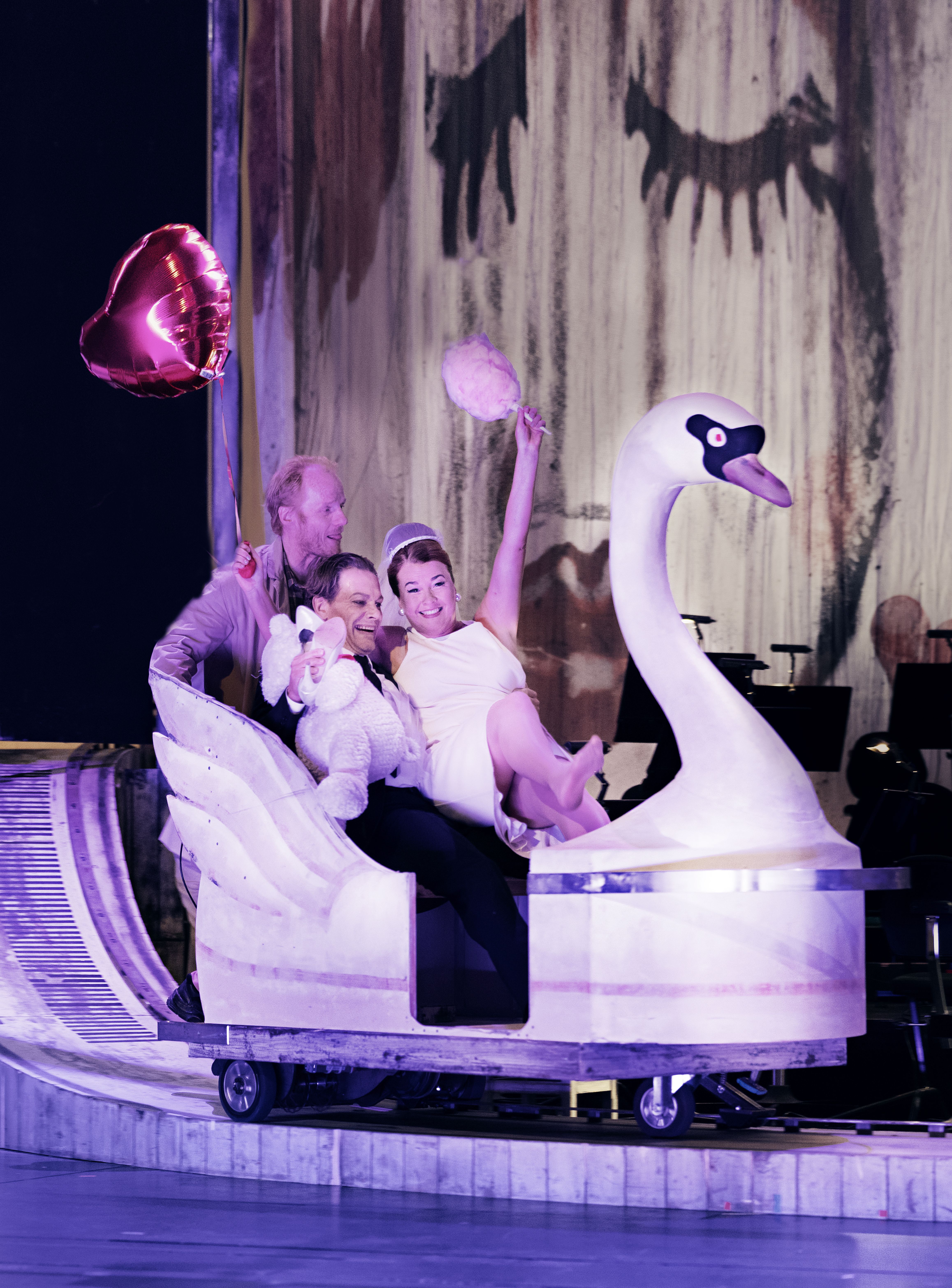 The main attraction of this revival of Elisa Kragerup’s staging (tonight revived by Anne Fugl) was the presence of the excellent period-instrument band, Concerto Copenhagen, in the pit. Except they weren’t actually in the pit. Rather the orchestra became the living centrepiece of Kragerup’s staging, their presence reinforcing the fact that there really was no privacy for anyone at the Palace of Aguasfrescas, here transformed into a funfair. Indeed, the initial ‘f’ in the sign fell off to suggest what I wager was what the characters thought of the events taking place. The strength of Kragerup’s staging is that she manages to make the comedy work, the audience audibly devouring it with pleasure, yet never loses sight of the fact that this is a work populated by real people with real emotions. For Susanna and Figaro, it’s their deep love for each other; for the Contessa, it’s the sense of loneliness and memories of better days, movingly illustrated in a ‘dove sono’ that saw her moving through the orchestra, trailed by a spotlight. The palace may be full of people, but her loneliness was beautifully illustrated.