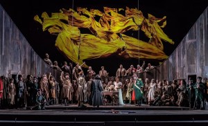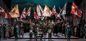 Chief among these was the augmented WNO Chorus. They sang their hearts out, filling the house with a huge wall of sound. Their commitment was never in doubt and they had clearly been intensively prepared by Stephen Harris. Blend was generally good, although there were a few individual voices sticking out among the tenors and a few, not inauthentic, strident vibratos among the sopranos. The accuracy of their pitching was most impressive and the full-throated fervour with which they sang was quite inspirational. Tomáš Hanus led a pulsating reading from the pit, always conscious of the score’s rhythmic impulsiveness, but similarly bringing out the delicacy in the light, floated string writing where required. The orchestra played extremely well for him – the brass in particular playing with remarkable accuracy. A special mention also for some wonderfully piquant clarinets. The strings, other than a few passing moments of sour intonation, also acquitted themselves well.