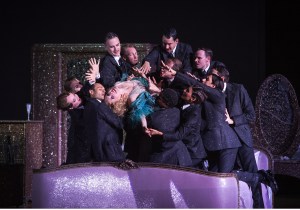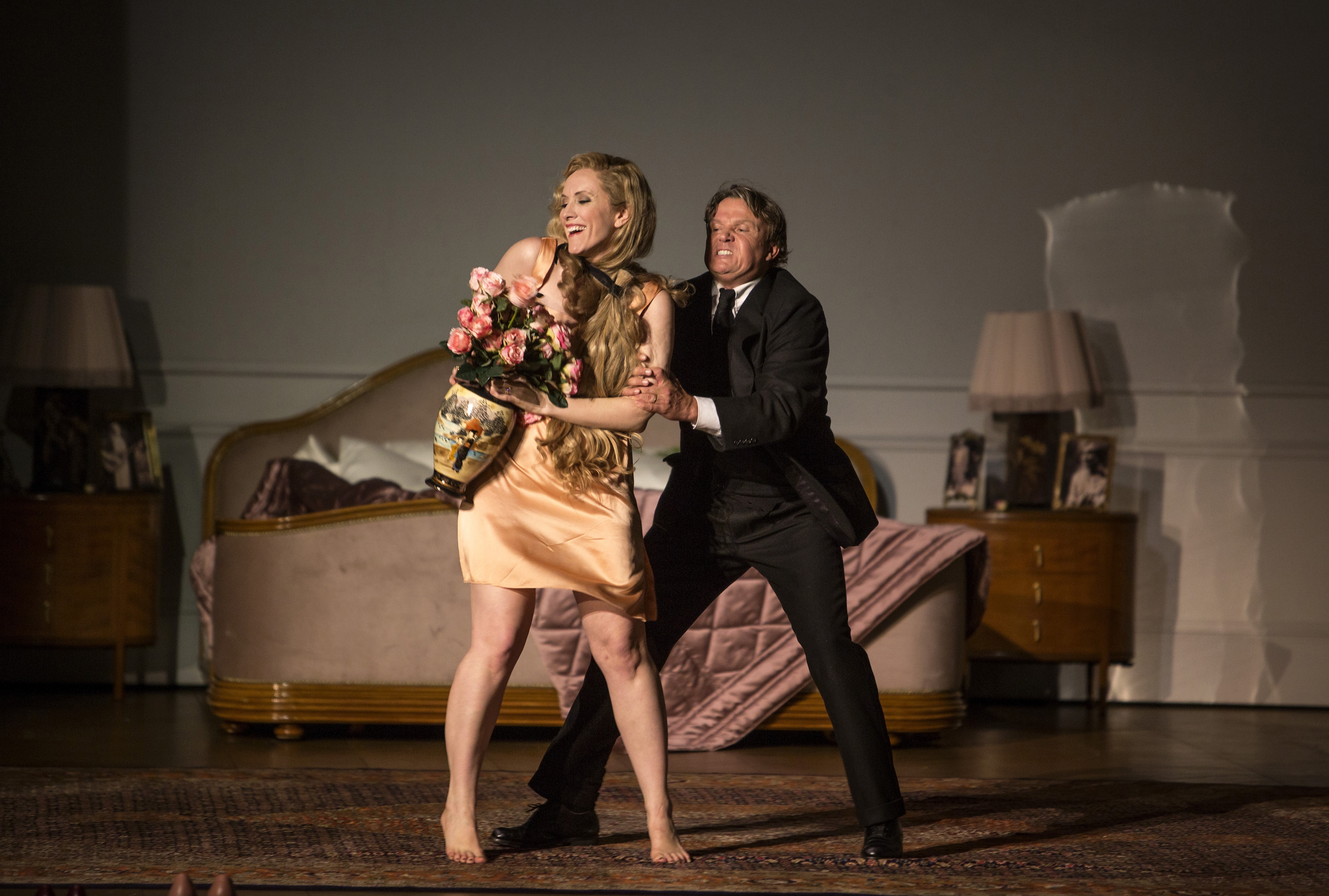 The downside, in common with Carsen’s Rosenkavalier seen at the London Royal Opera last year, was a coldness in the relations between the characters. They seemed to barely engage with each other (other than the aforementioned kiss). This is a story of a man’s grief and obsession and despite Aleš Briscein’s fearless vocalism and Sara Jakubiak’s genuine charisma, it felt that the interactions between each other were cold and unfeeling. The result, was that it felt difficult to care about either character. Similarly, having Günter Papendell’s Frank remove his shirt in his argument with Paul (although not disagreeable to witness) seemed gratuitous, unnecessary and certainly random. In the final tableau, Carsen’s decision to portray Frank and Brigitta as doctors in white coats, ready to take Paul away, felt like an afterthought – particularly as it hadn’t been developed through the evening – and reinforced that impression of having invested in a story that didn’t find closure.