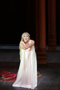 Where it did work was in Ádám Fischer’s sensational conducting. He led the work in the way that early Verdi really should go – but rarely does. Tempi were swift, with a strong sense of pulse, attack was crisp, and there were some welcome embellishments to the vocal line in places. The orchestra played very well for him, absolutely water-tight in ensemble all night. The chorus sang lustily and enthusiastically in the big Act 3 chorus ‘si ridesti il Leon di Castiglia’. The house forces most certainly maintained the high expectations of this address.