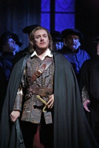 Where things were more problematic was in the solo singing. Francesco Meli’s Ernani gave pleasure in his native diction and clarity of text. When he pulled back on the volume, his slightly nasal tenor was fine. It does sound like an essentially lyric instrument being made artificially wider, pushing it further than it can naturally go. The result is a wide beat in the voice, intonation that sits south of the note, and a vocal production that had me fearing in his big opening scene that he wouldn’t last the course. He pulled back on the tone nicely and gave us some well-judged soft singing. His embellishments were also satisfying. That said, the overriding impression I left with was that it was really quite hard going to listen to.