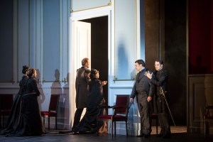 The result, was that they succeeded in really bringing out the motivations of the individual characters. Penda’s Elisabetta was a woman who desperately wanted to break out of the stifling role society had given to her. The physical effort of containing herself was expressed by actually switching into French at times, as well as her volcanic eruption in standing up to Filippo in Act 4 (Act 3 in the Milan version we were given tonight). Penda’s pearly soprano, with a steely glint, gave a great deal of pleasure – not least in an impassioned ‘tu che le vanità’, the voice opening up on top and descending to a full and generous chest register. She also capped the ensembles wonderfully. A compelling performance from a great singing-actor.