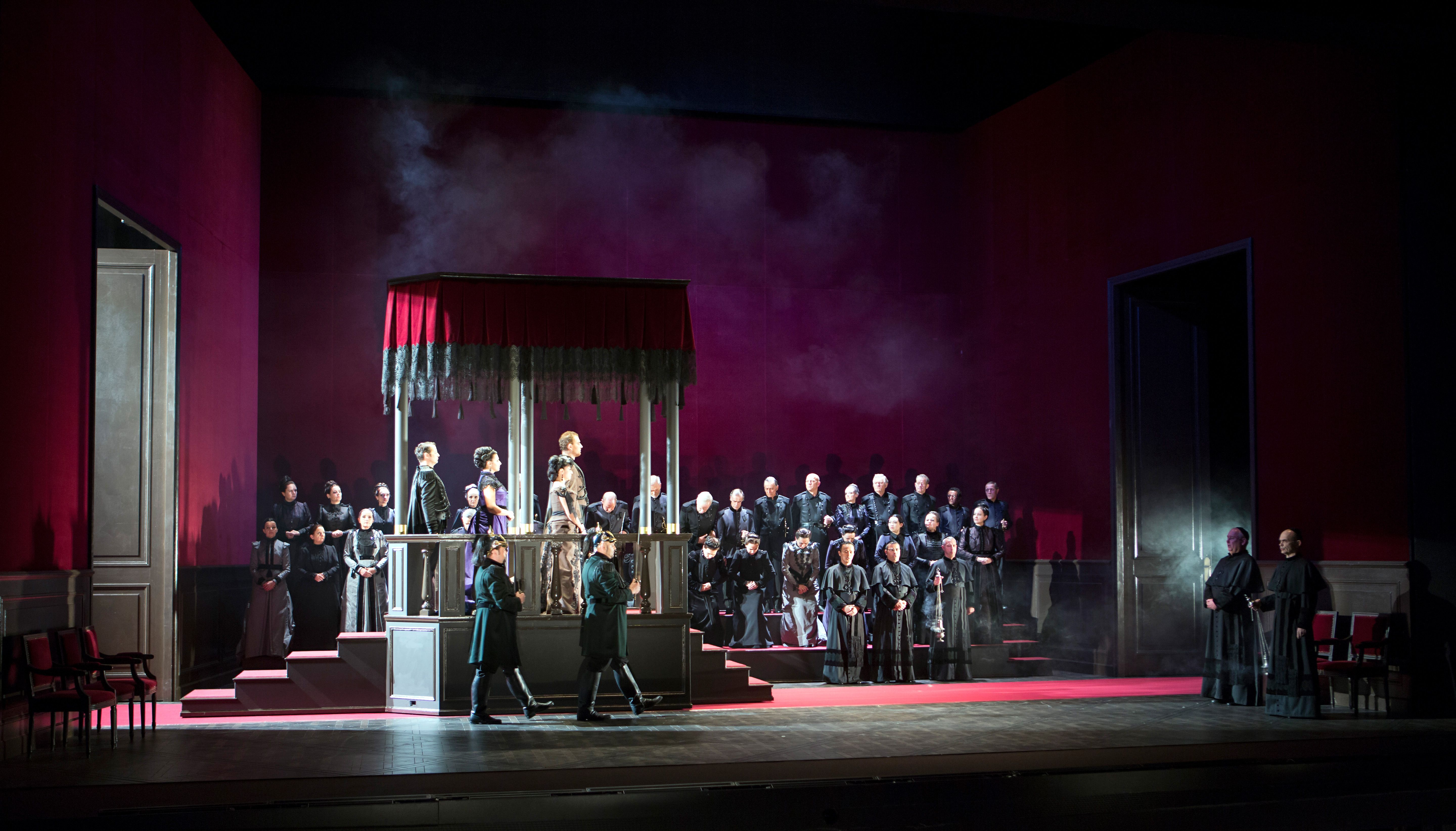 Given the relative modest resources of the house, the chorus was somewhat small in number – just under 40 – and they didn’t always manage to be heard over the surging orchestral textures from my seat, although they did sing with enthusiasm. The orchestra was excellent, the strings in particular offering a warm carpet of sound. Modestas Pitrenas brought out some fascinating colours in the orchestration – especially in the big bass duet, the warmth of the textures echoed in the warmth of the voices. His tempi felt natural, for the most part, although some of the gear changes in the transitions felt less than organic – the music almost grinding to a halt at the first entrance of the Flemish Deputies is one example.