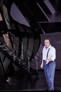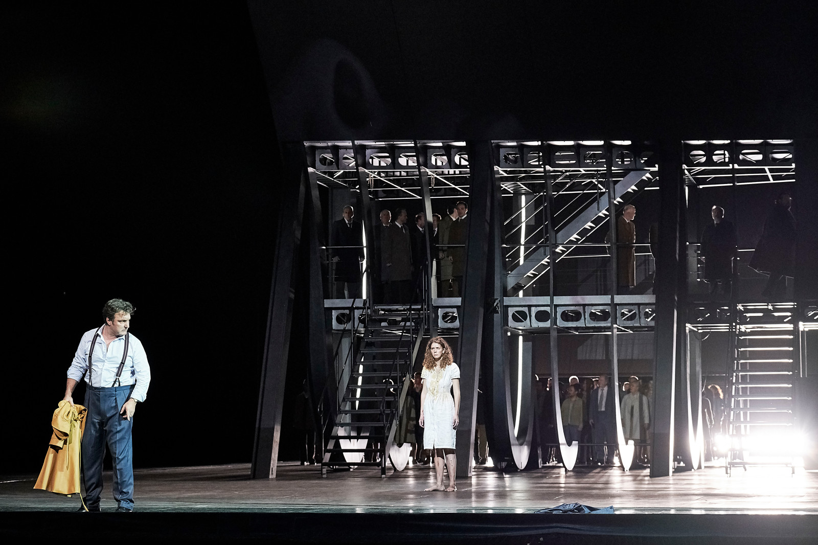 And yet, despite the undoubted intelligence and insight of the staging, the finely-crafted human relationships at its core, I left somewhat less than convinced. There were two reasons for this. One was the venue. In a space as enormous and impersonal as this, the visceral impact and intelligence of this highly penetrating staging was partly lost, due to the sheer distance between spectators and the stage. Bieito and his cast compensated for that with the placement of the principals on stage, but that can only go so far. The other reason I felt that the evening lacked impact was in Fabio Luisi’s overly-sculpted and slightly soporific conducting. He obtained playing of burnished magnificence from the house band. The generous warmth of the opening prelude, or the transparent lightness of the opening measures of Act 1, were most impressive. It’s just that his conducting seemed to value that sculpting of sound over dramatic impetus, meaning that the evening had a tendency to drag. He also allowed the band to play out resoundingly which meant that, at times, the principals were covered. The orchestra had a good night; the chorus sang with vibrating, full-throated ardour.
