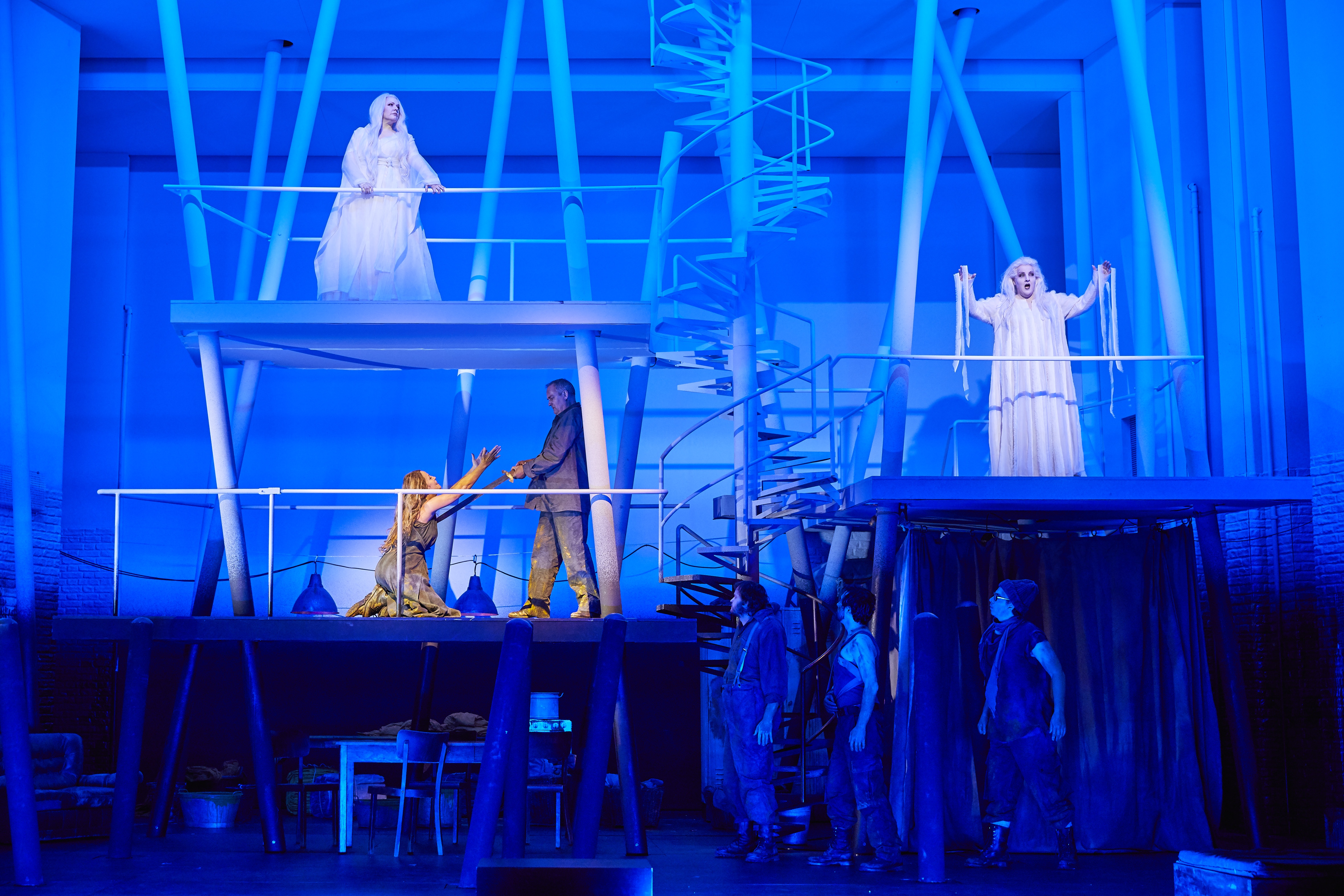 Kriegenburg gives us a staging that undoubtedly looks good. The sets (Harald B Thor) are most imposing, clearly illustrating the world of the Kaiser and Kaiserin and the mortal world below. Making full use of the theatre’s impressive technical facilities, the initial clean white lines of the world above disappear as the stage ascends, revealing the mortal world below and the home of Barak and his family. A spiral staircase allows characters to ascend or descend as the work progresses. The most notable aspect of Kriegenburg’s staging is the clarity of this storytelling. He illustrates the libretto very closely, taking the work very much on the surface. This clarity of storytelling is most definitely a strength, in a work that can sometimes be impenetrable. He demonstrated the Kaiser’s imminent petrification most effectively, by having him wheeled on in a wheelchair as the evening developed. Similarly, the body doubles for the Kaiserin and Barak’s Weib, allowed Kriegenburg to demonstrate that there was more that united them than separated them. And yet, I longed for something deeper. Something that questioned the work’s heteronormativity, for example, but also, one that interrogated this idea of an elite needing to take advantage of the struggling in order to survive. Personenregie consisted of a fair bit of declaiming while staring into the middle distance, but the cast managed to create vital and living personalities through impeccable clarity of the text. Again, Kriegenburg gave us a staging that most certainly looked great and offered an admirable narrative clarity, and these are certainly reasons to celebrate.