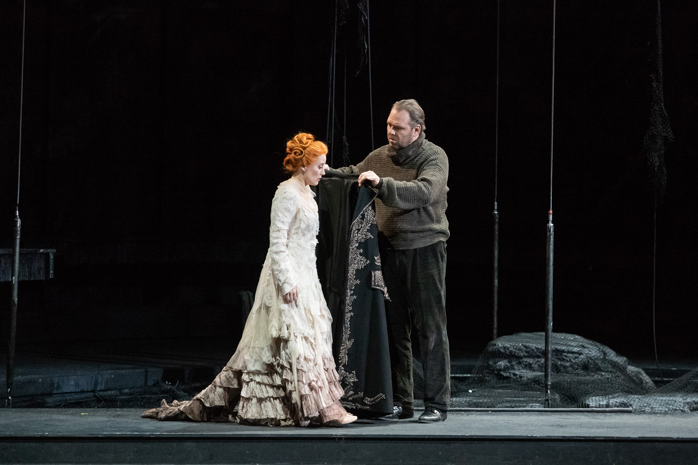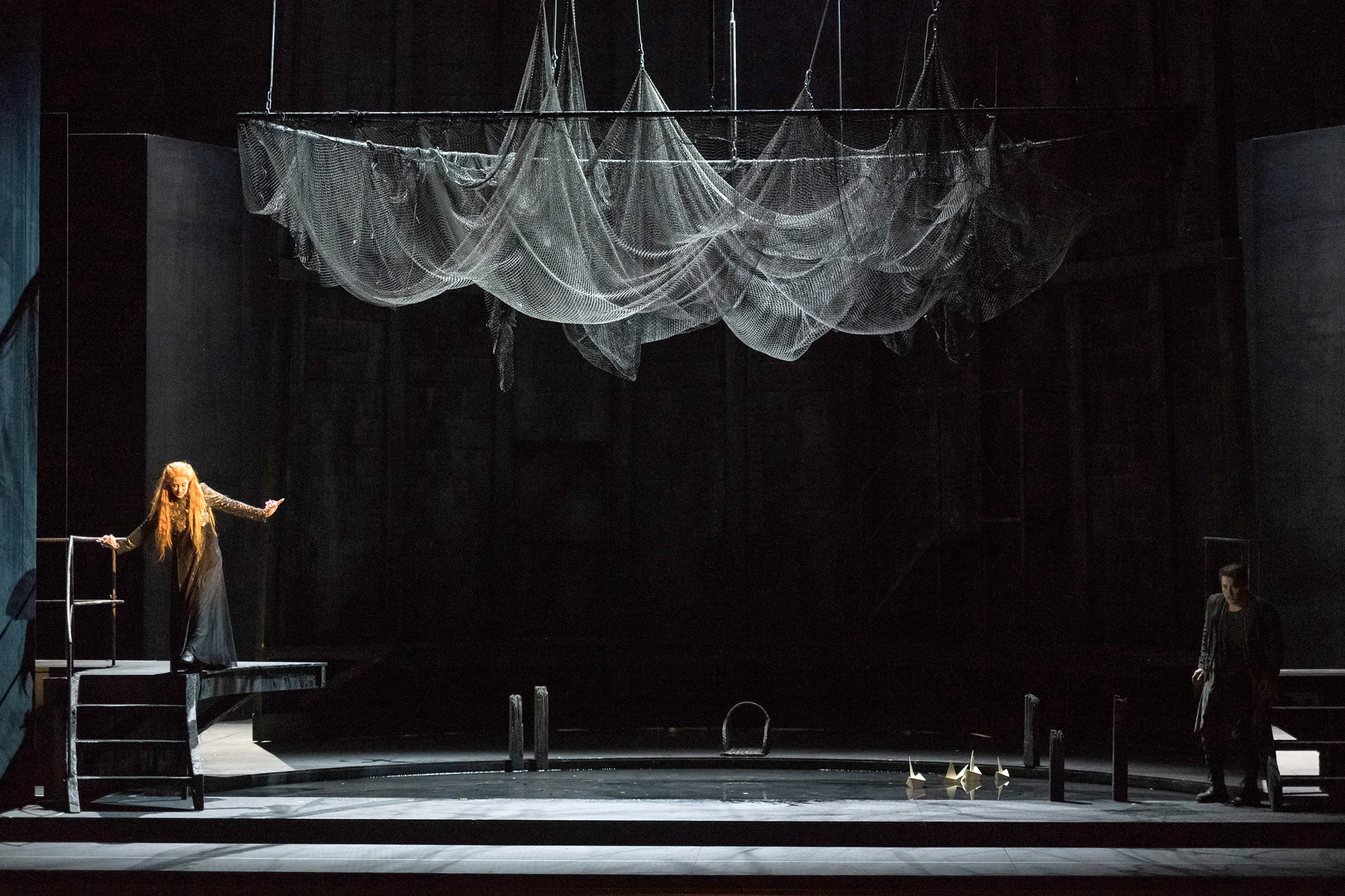 This staging of Pelléas et Mélisande by Éric Ruf is a co-production between Klagenfurt, the Théâtre des Champs-Élysées, Toulouse and Dijon. Tonight, revived by Laurent Delvert, it made for an appropriate framework for the action. Set in a grim, dark world where the sun never shines, there’s an interesting hint of what could lie beyond, as the inside of the castle appeared to be brightly lit, suggesting that what the characters revealed to each other on the outside, was far from who they were on the inside. The tower scene, for instance, saw Mélisande singing from a golden room, the light amplifying her bejewelled costume (Christian Lacroix). The visuals certainly reflected the darkness of the score’s tinta. And yet, I left with a feeling that as a staging it was rather prosaic, always taking the piece at face value but not wishing to delve beneath to dig out the richness of symbolism that lies below. Not penetrating the deeper levels of a work that contains so many mysteries, the most mysterious of which is Mélisande herself. What was particularly interesting was how Ruf made her an emotionless figure upon whom Pelléas, Golaud and Arkel projected their own fantasies of who she should be and what they wanted from her. The show had clearly been fluently prepared and personenregie was efficient, although it frequently felt that characters were a little too fond of delivering their lines directly into the audience.