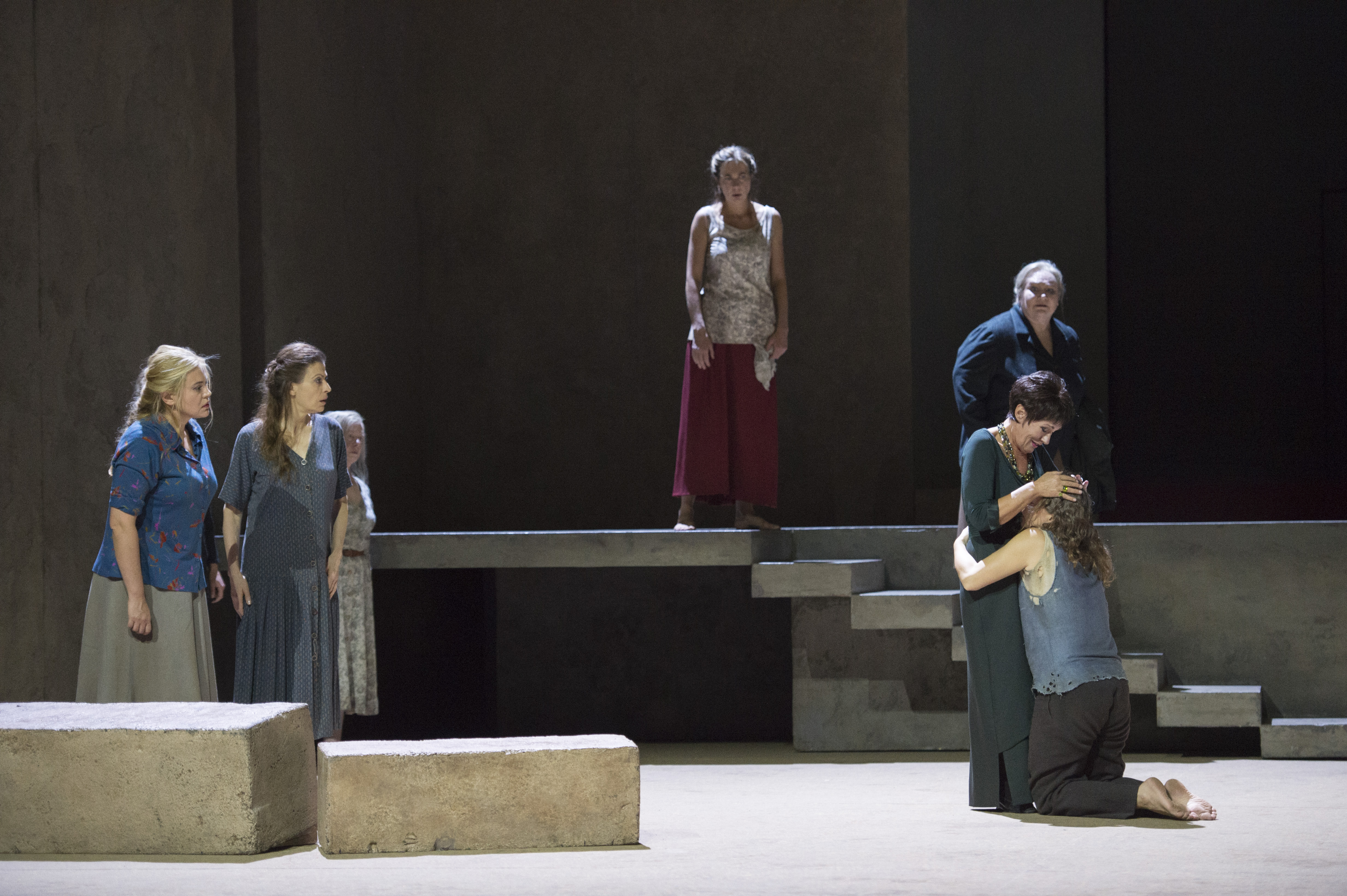Following its initial premiere at the Aix-en-Provence festival back in 2013, Patrice Chéreau’s production of Elektra has led quite a peripatetic existence, with performances in Helsinki, the Scala, the Liceu and the Met.  It received its Berlin premiere back in 2016 with a similar cast to the first Aix cast, who had worked so closely with Chéreau before his passing.  With the passage of time, a new set of singers have taken on the key roles, with tonight Ricarda Merbeth replacing the originally-cast Evelyn Herlitzius in the title role.  Chéreau’s staging is notable for toning down the excesses of yore and instead bringing a psychologically cogent reading of the text, one where Klytämnestra, for instance, is less a raving nightmarish figure than a broken woman, desperate to find respite from her nightmares.  Back in Aix, I left the theatre unconvinced, but seeing it later at the Scala, and especially at the Liceu, actually made it seem a deeply fascinating and disturbing piece of theatre.  Getting to see this new generation of singing-actors taking on this, by now seminal, staging certainly made for a very tempting prospect.