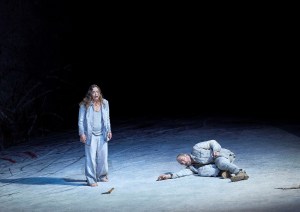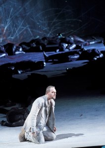 Vocally, it was an extremely strong evening. Mayer was unstinting in the title role. It requires considerable heft and the ability to sustain some high declamatory writing. Mayer was never afraid to sacrifice beauty of tone to portray the desperation of his character, to the extent that it did find me somewhat concerned for the health of his instrument. His baritone is quite dry and leathery now, but his acting was always affecting and the sheer energy that he brought inspired admiration, even if it wasn’t always easy on the ear. Daniel Johansson brought his beefy tenor to his roles. He negotiated the angular vocal writing with ease. Again, there was a slight sense that he was giving a little too much vocally, but it was an impressive assumption of a relatively thankless role.
