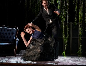 Since its premiere at the Scala back in 2011, Francesconi’s Quartett has become something of a repertoire staple, with multiple productions in theatres including the Liceu, the London Royal Opera and the Colón in Buenos Aires. These performances at the Theater Dortmund marked the first German performances of the work. Tonight also marked my first visit to this attractive, modern theatre. It’s clearly a house with a great sense of ambition and a willingness to look beyond the kind of programming that gives us wall-to-wall Traviatas that some other theatres subject us to. Unfortunately, tonight wasn’t particularly well attended and there was a significant number of early departures during the course of the eighty-minute running time. Still, it’s a fine place to see a show – sightlines are excellent and the seats comfortable. The coat check is self-service and requires a 10 euro cent coin.