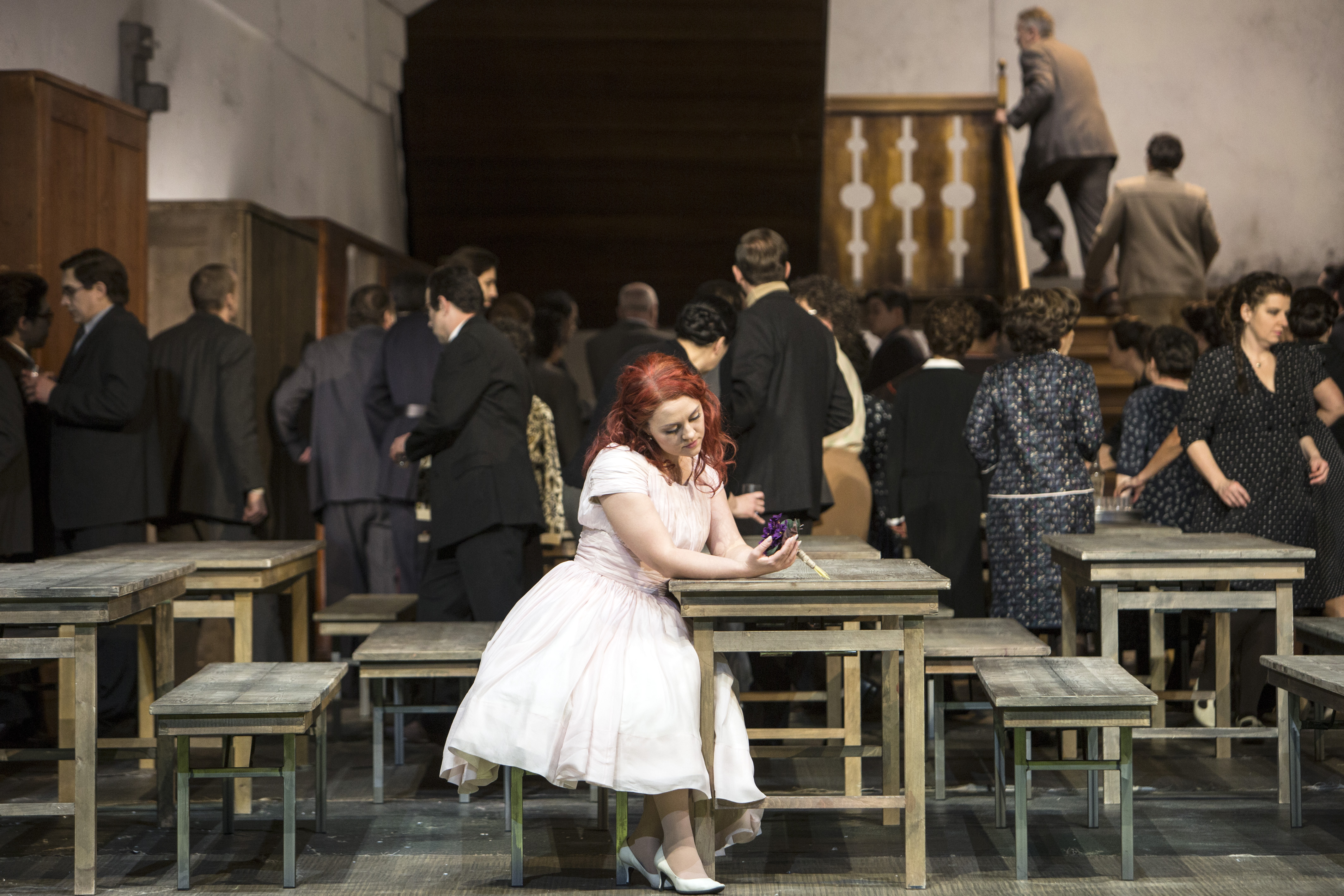 Wieler and Morabito give us a place of strong passions – Elvino is easily prone to violent outbursts and Lisa, similarly, is more than ready to make her feelings known. Yet, in their vision Amina is shy and retiring, seemingly uncomfortable with the opening celebrations. It did make me question why the community would celebrate her with such strength of feeling. Perhaps, it was due to the fact that this was a community full of strength of character – the chorus very much a group of individuals, vividly acted, and not a faceless mob. This was very much a strength of Wieler and Morabito’s staging. There were, however, other aspects that I found problematic.