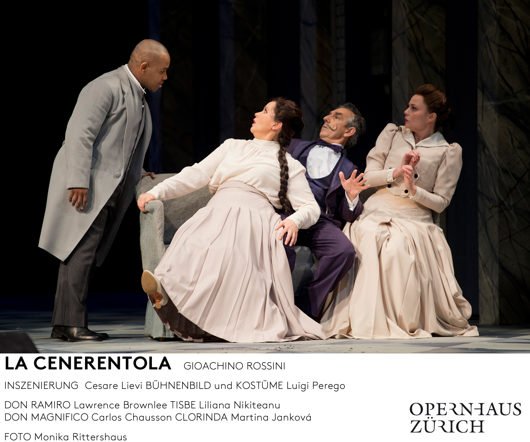 Oliver Widmer was actually this production’s first Dandini. The voice took a while to come through – there was an acidic edge at first that added a harsh glare to his singing. His legato is also rather aspirated which rendered the lines rather bumpy. By Act 2, the tone had gained more warmth and his comic timing was certainly admirable. Alessandro Corbelli was giving his house debut with this run. His Don Magnifico was certainly sung off the text and he was never less than engaging to watch. The voice has dried out now and he was often inaudible, even in a house of this size with period instruments. Both Martina Janková and Liliana Nikiteanu were terrific value as the sisters, both throwing themselves into their roles with abandon, Janková with her bright, diamantine soprano and Nikiteanu with her fuller, orange-toned mezzo. The big discovery in this cast was Stanislav Vorobyov as Alidoro. A member of the house’s ensemble he’s most definitely a name to watch. The voice is big and rounded, with an impeccable legato, no aspirates here, and an impressive ability to turn the corners. The top narrows slightly, but he’s still young and this will come with time.