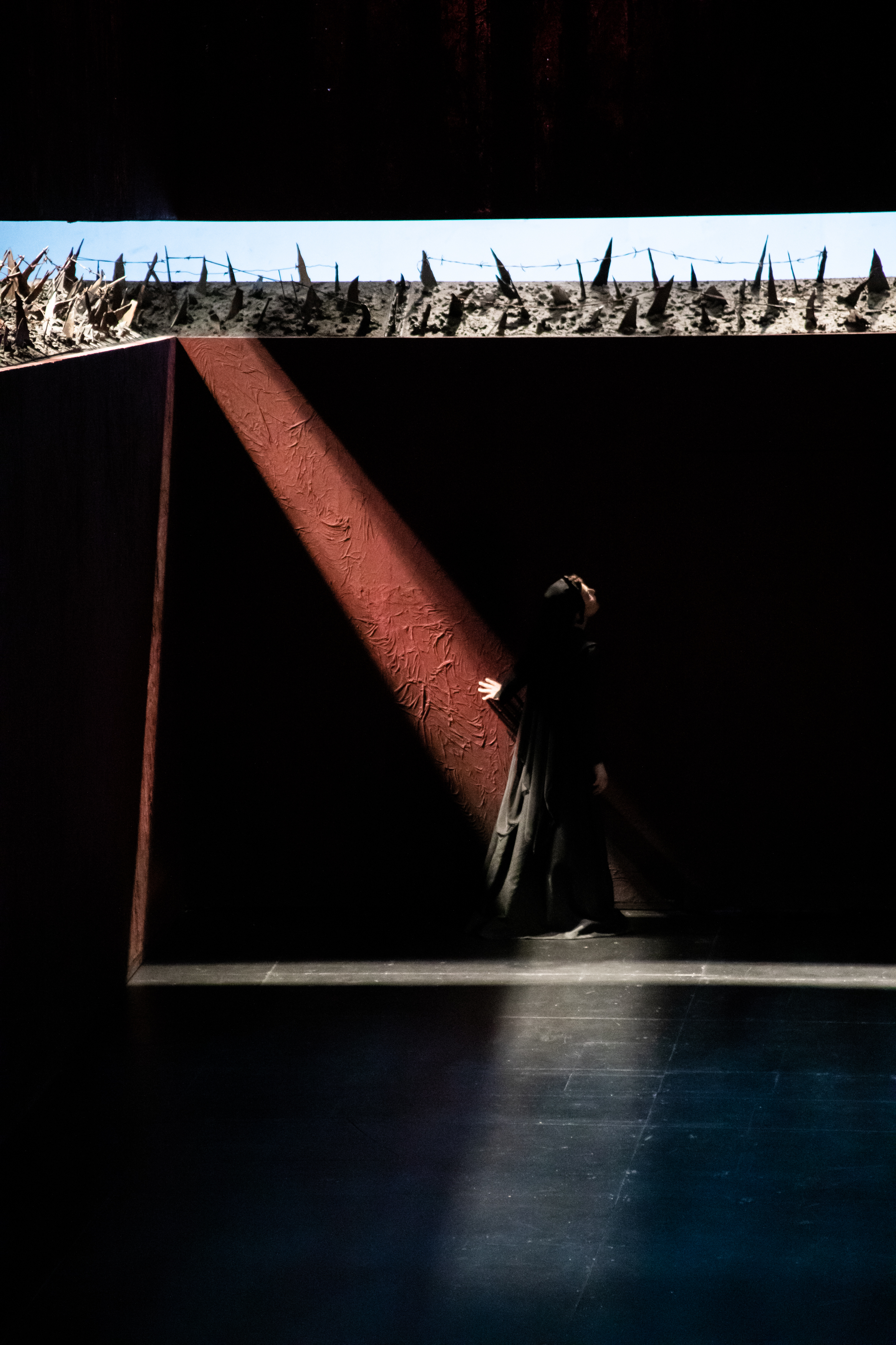 This impression was magnified by Carminati’s conducting. The house band, the Orquestra Sinfónica Portuguesa, is a very fine one and I just wished that Carminati had pushed them even more. Attack was unanimous but flaccid, soft-grained where I longed for a sharpness of approach. His tempi were on the moderate side of swift and I wished that he had pointed the rhythms more and asked the strings to play with less vibrato. The brass made a fantastic noise in the queenly confrontation but again, in common with the staging, a firmer hand could have produced much more electricity. The excellent house chorus sang with vibrant yet well blended tone, pulling back on the dynamics to quite magical effect.
