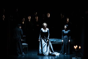 Maria Stuarda is a work of extreme passion, of the desperate holding on of power – by any means necessary. On this of all nights, the lines ‘Or dell’Anglia la pace è sicura, la nemica del regno già muor’ had particular resonance, as indeed did the idea of a desperate, power-hungry English ruler creating Scottish suffering just to hold on to power. Yet De Rosa’s staging felt anodyne, not even attempting to mine the drama within. Those who like their opera as fashion show will no doubt have appreciated some of the attractive couture (Ursula Patzak) worn by the ladies. It was surprising how, for someone locked up at Fotheringay, Maria Stuarda was glamorously dressed and impeccably coiffed. Indeed, even as she was taken to the gallows, her hair still looked immaculate, adorned with a regal headpiece. She might have been about to lose her head, but at least it looked fabulous when it went.
