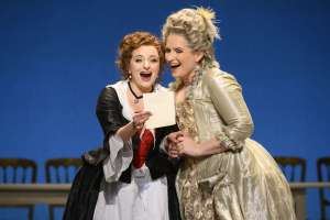 As the Almavivas, McGovern was a youthful Conte, also bringing out so many facets of his character. The snarling tone that he expressed to Susanna as she rejected him in Act 1 revealed a not so hidden sense of entitlement over his female servants. Or the anger that he brought out when he realized that he had been duped in his big aria, negotiating the triplets with ease. He also pulled back nicely on the tone in his pleading for forgiveness. Above all, McGovern sang this music with his voice, never pushing, always allowing the voice to flow. His Contessa was Anita Watson. Her ‘porgi amor’ was dispatched with big sound and generous vibrations. Unfortunately, phrasing in her ‘dove sono’ was rather short, despite Rizzi’s flowing tempo, and there was no attempt to ornament it, to truly make the music her own – although the shortness of phrasing was deployed to dramatic effect, making it much more desperate than the wistful nostalgia we usually hear.